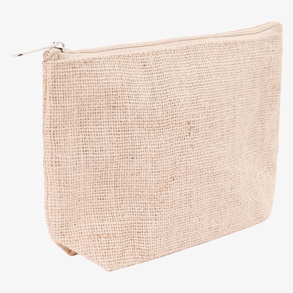 Das Etui-Täschchen aus Jute Tyto hat eine einfache Struktur mit passendem Reißverschluss und Jute-Zipper. Es misst 22 x 14 x 6,5 cm und bietet ein Volumen, das für die Aufbewahrung persönlicher Gegenstände geeignet ist.