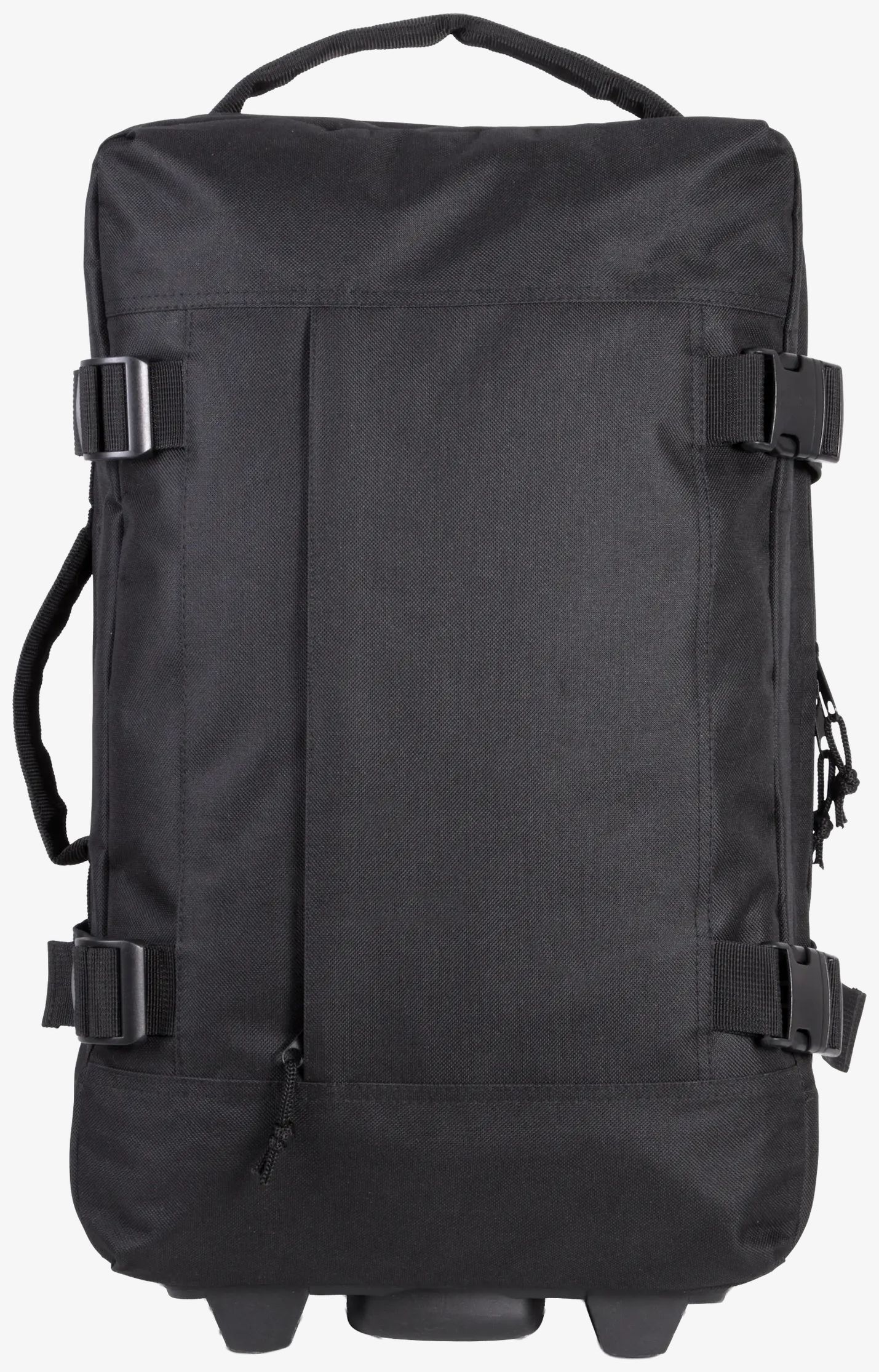 Der sac trolley cabine ist aus 600D Polyester gefertigt und verfügt über eine große Reißverschlusstasche vorne für einfachen Zugriff. Er hat zwei interne Fächer mit Haltbändern sowie äußere Kompressionsriemen zur Volumenanpassung. Die Basis ist mit einer reliefartigen Punktauflage an den Griffen verstärkt.