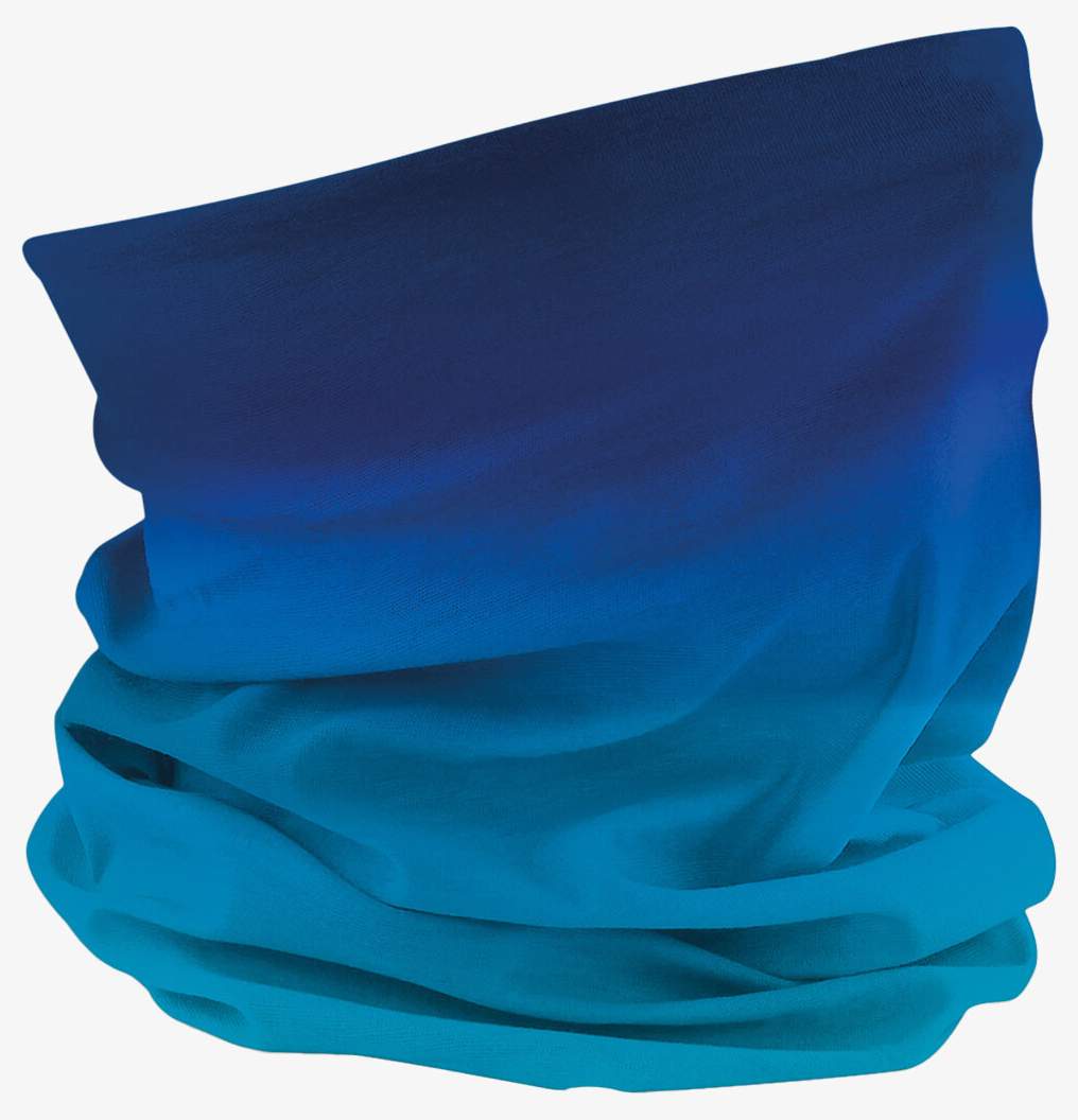 Morf® Ombré bandana neck gaiter designed for versatile use with a gradient color effect and breathable seamless fabric for added comfort. It does not protect against infections or transmission of viruses or diseases. Dimensions 50 x 25 cm.