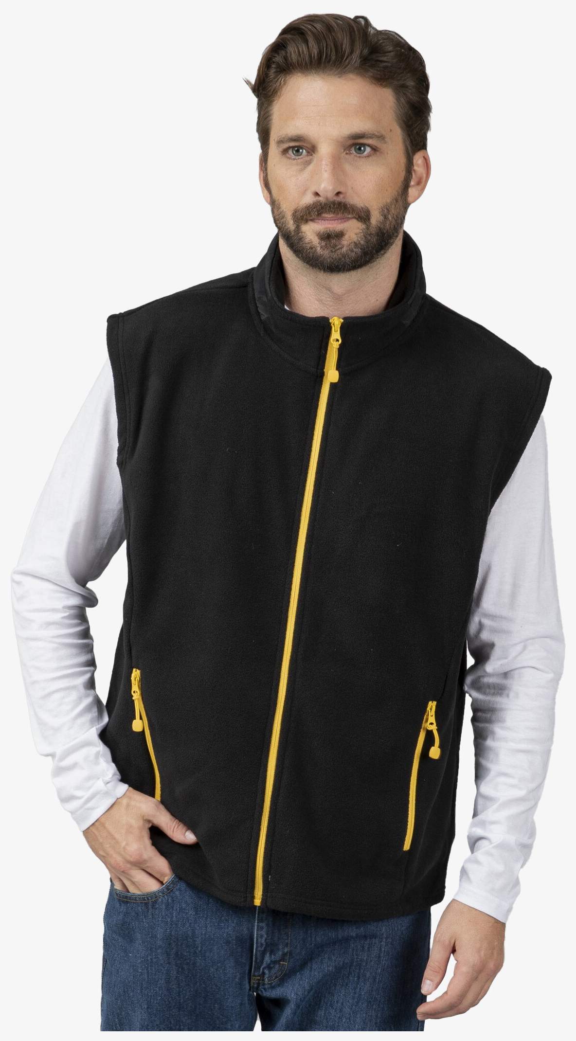 The Adriatic polar bodywarmer is made of polyester with contrasting zip closure and zippered pockets equipped with plastic pulls. The binding features a chevron pattern.