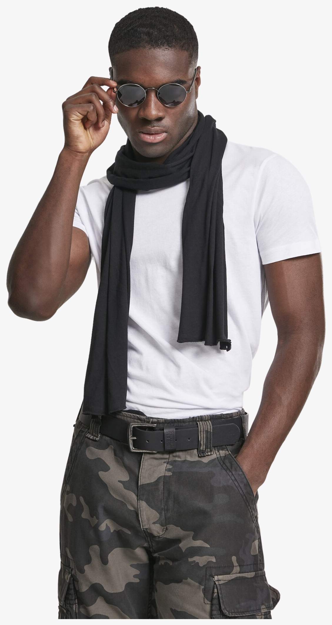 The Jersey Scarf is made of single jersey with a composition depending on the color: Heather Grey contains 90% cotton and 10% viscose, Charcoal includes 60% cotton and 40% polyester. One size allows versatile use.