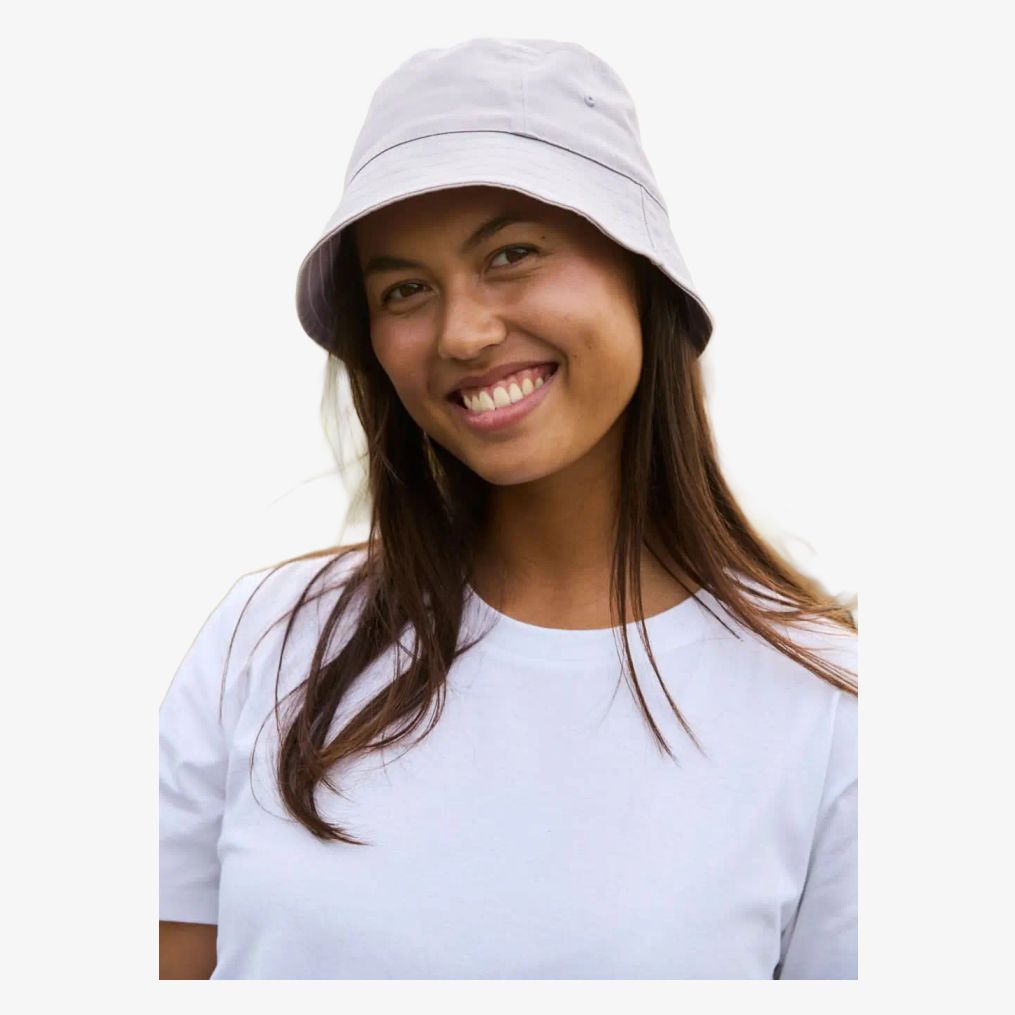 The Bucket hat is a bucket hat in combed organic cotton with twill fabric and 4-panel construction. Its shape covers the head for daily use, with two circumference sizes available depending on head size.