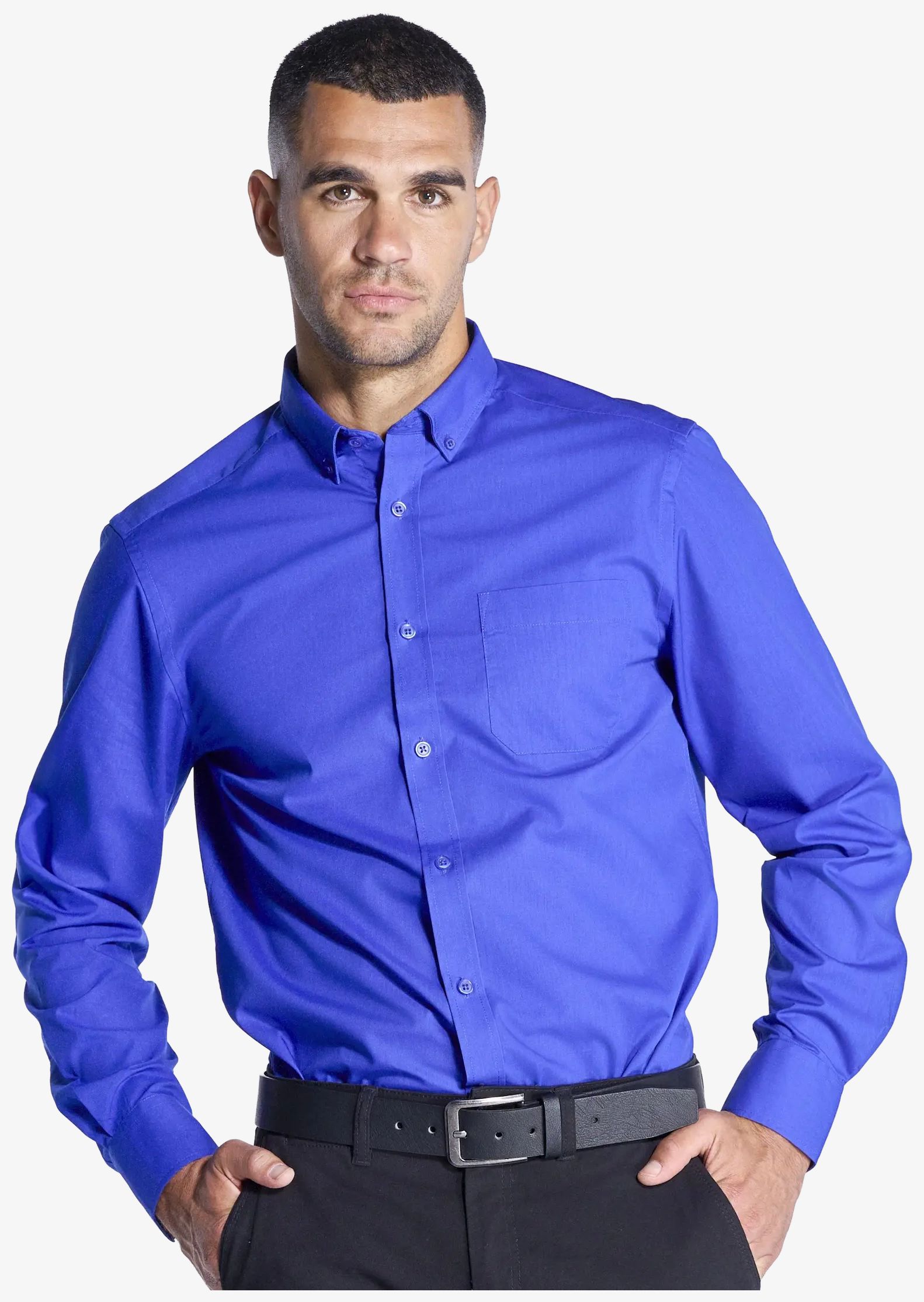 Men's long sleeve poplin shirt with button-down collar and chest pocket.
