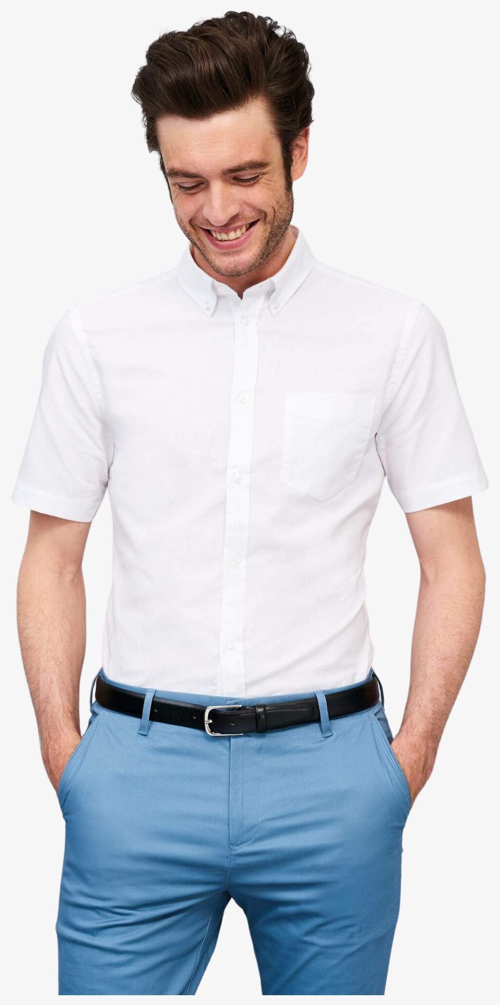 The short sleeve oxford shirt Brisbane Fit is made with a cotton and polyester blend. It features a button-down collar and a chest pocket. The placket includes 7 tone-on-tone buttons.