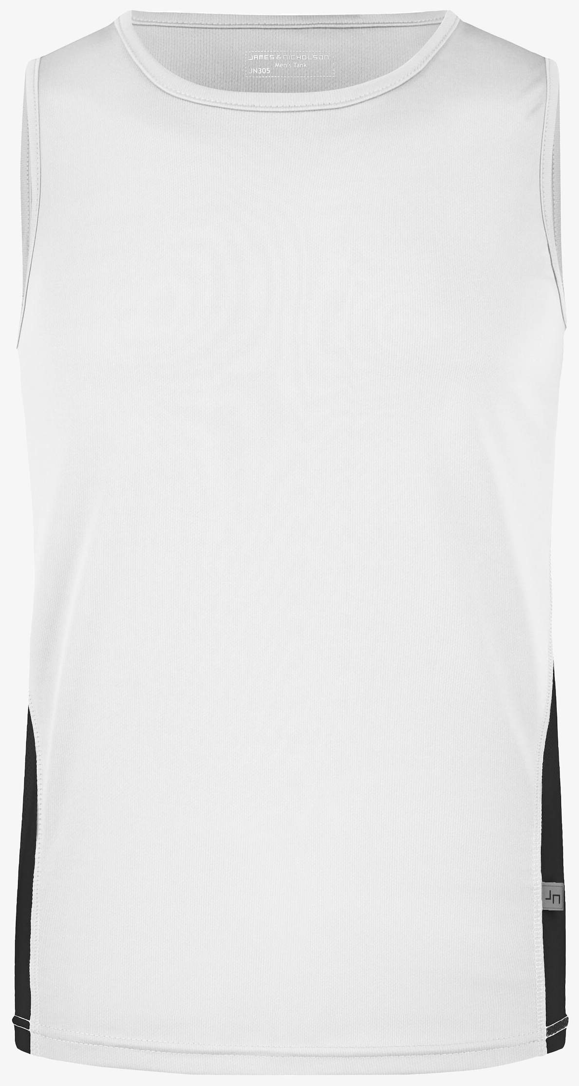 The Men's Running Tank is a tank top made from 100% polyester fabric that ensures effective sweat regulation through its quick-drying and breathability. It features contrasting mesh inserts and reflective printing on the back to enhance visibility. The neckline is round.