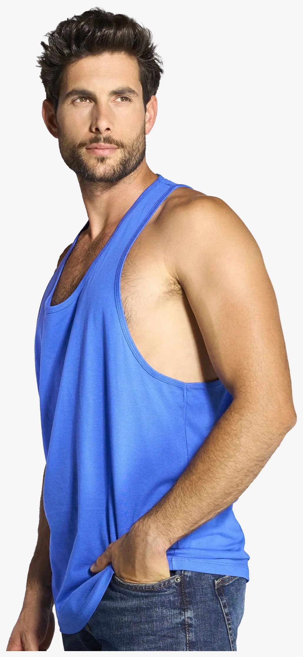 The Urban beach unisex tank top is made of cotton with fabric neckline and armholes. It features a racerback and wide armholes for easy wear. The label is removable.