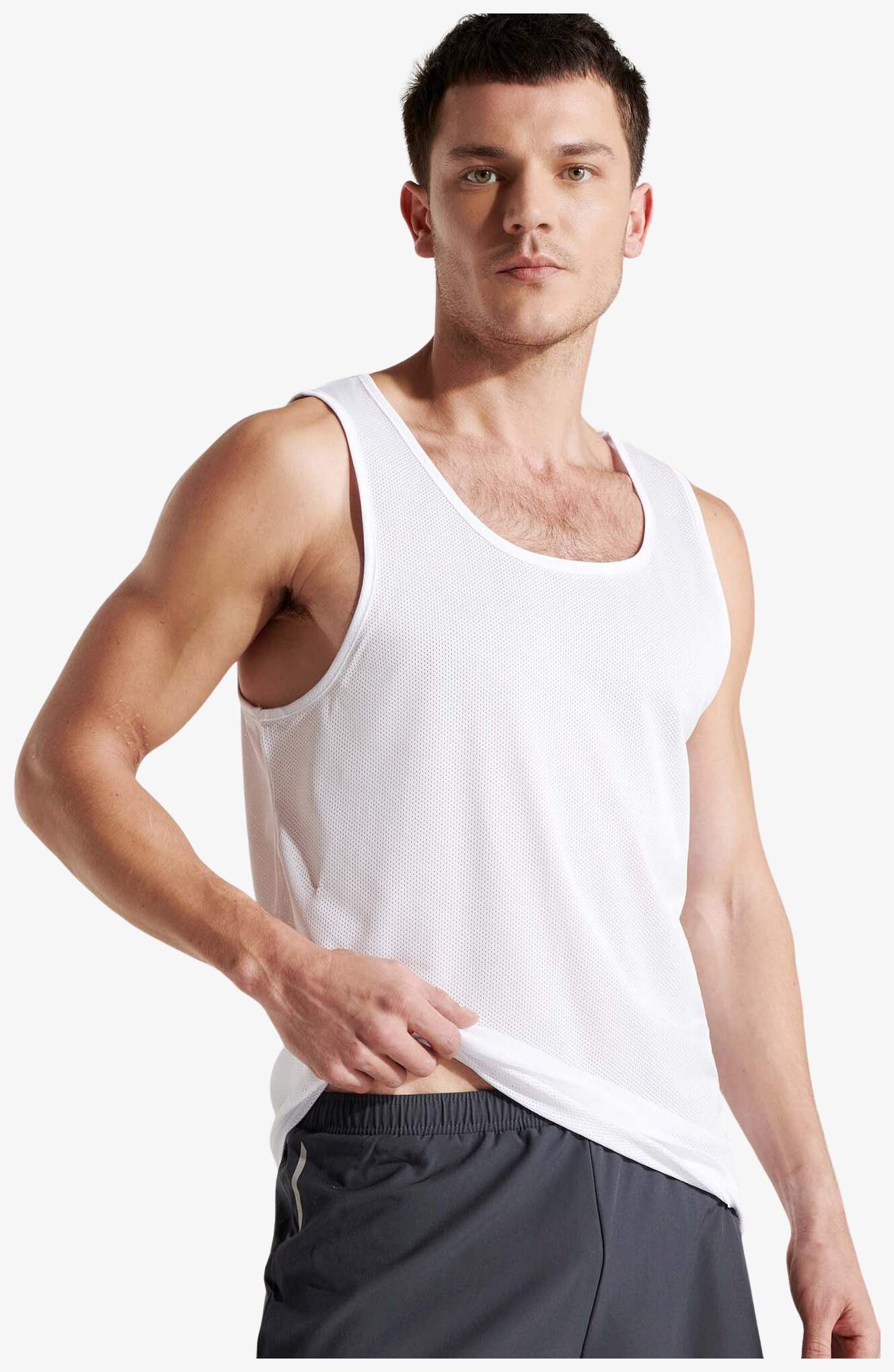 The Interlagos tank top is made of microperforated polyester with wide straps and a round neck. It features breathable fabric and a light touch.
