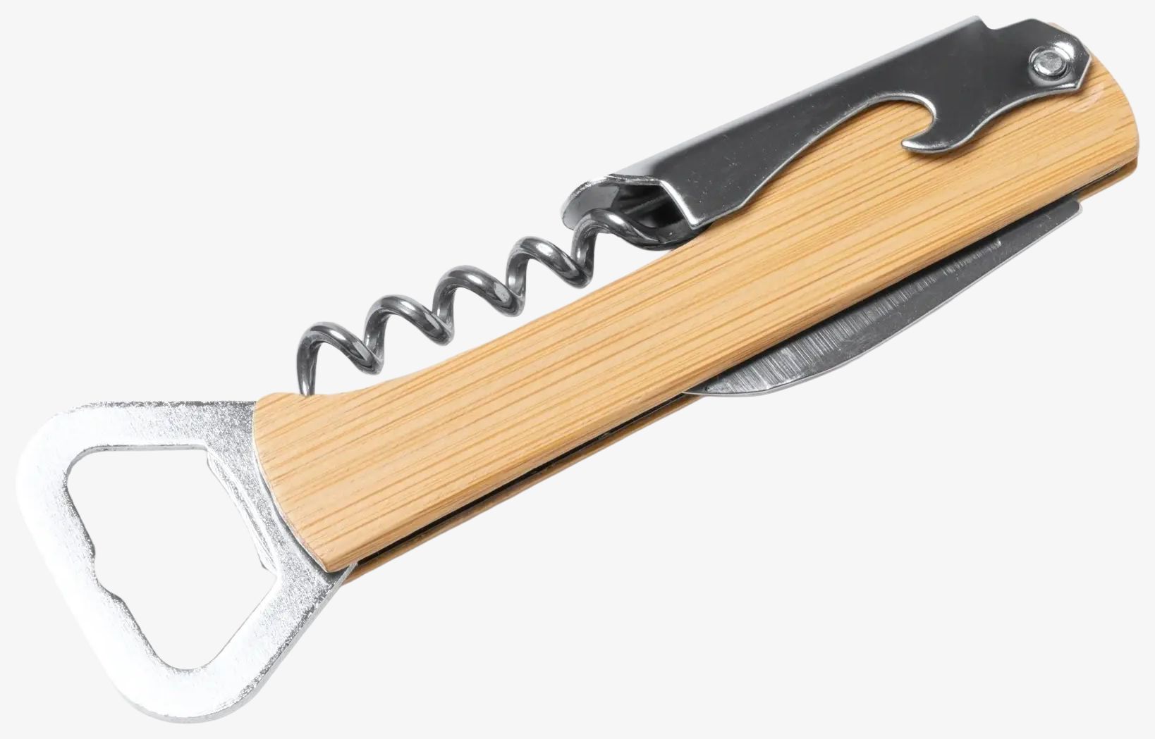 The stainless steel bottle opener SAIPAN combines a bottle opener and a corkscrew in a classic design. It is presented in an eco-design box.
