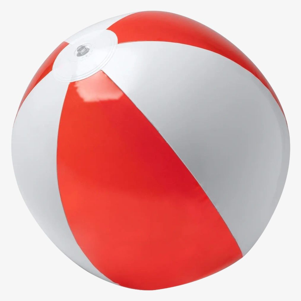 The translucent PVC beach ball has a 28 cm diameter. Composition is PVC.