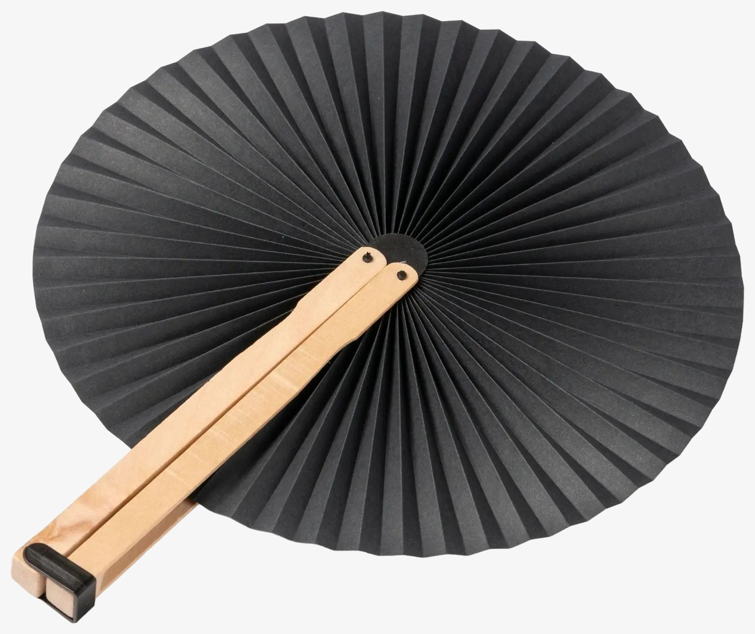 The foldable fan TAO is made of wooden ribs and has compact dimensions suitable for practical use in various occasions. The foldable structure facilitates its transport and storage.