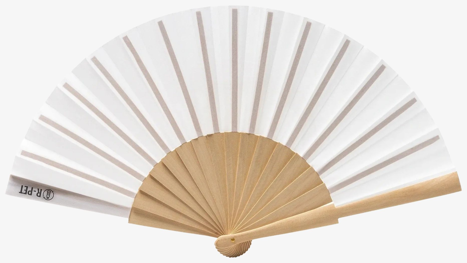 The fan features a wooden frame combined with RPET fabric. Presented in an eco-design box ensuring simple and clean storage.