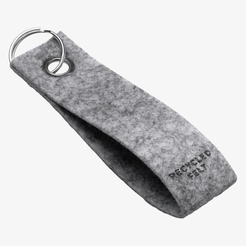 The rectangular keyring in recycled felt has a classic shape with an original texture. It is soft to the touch and designed for durable use. Its compact size allows easy transport in a pocket, bag, or attached to a belt loop.