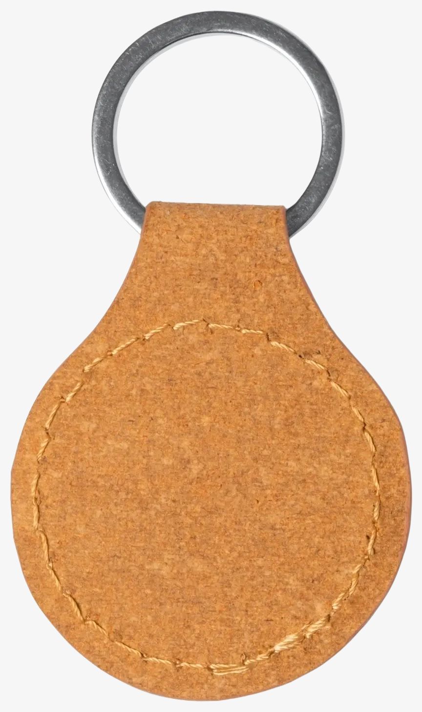 The round keychain in recycled leather is equipped with a metal ring to hold keys. This keychain combines recycled leather and metal.