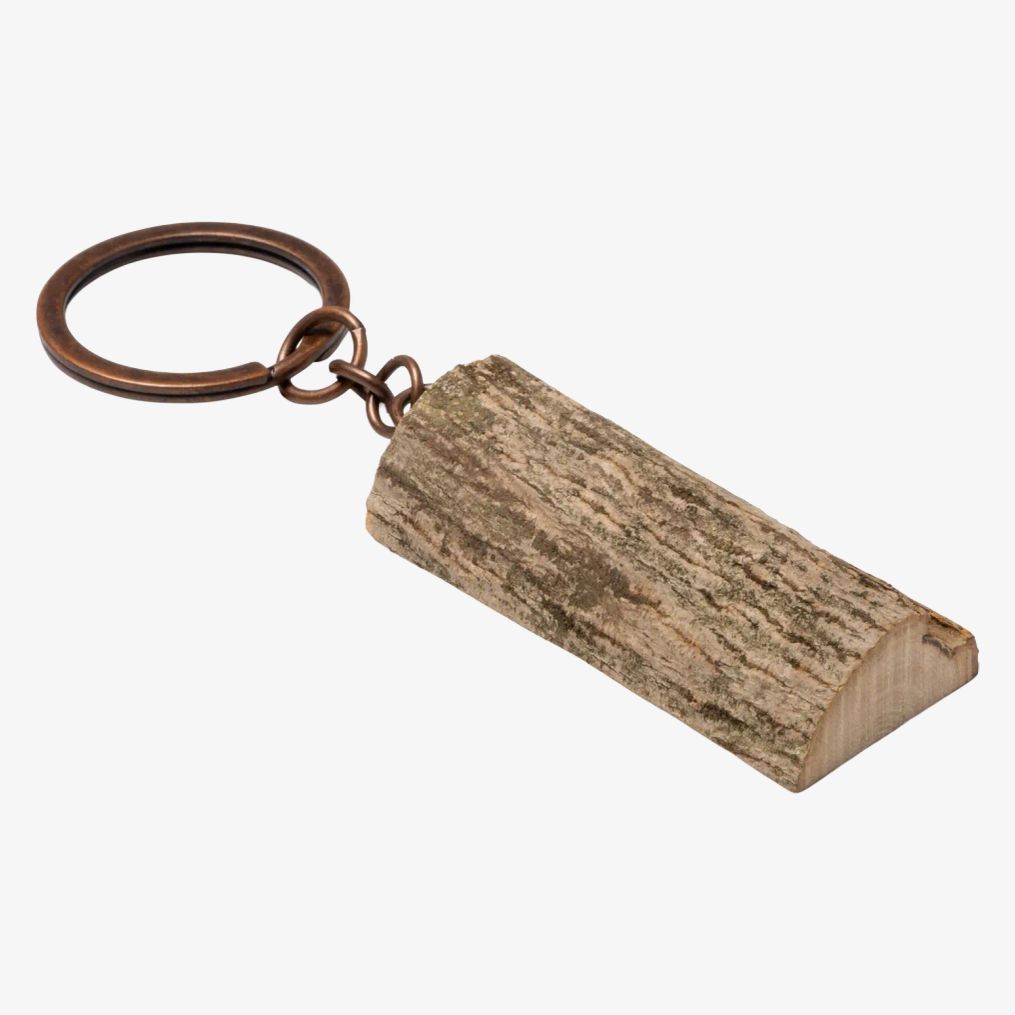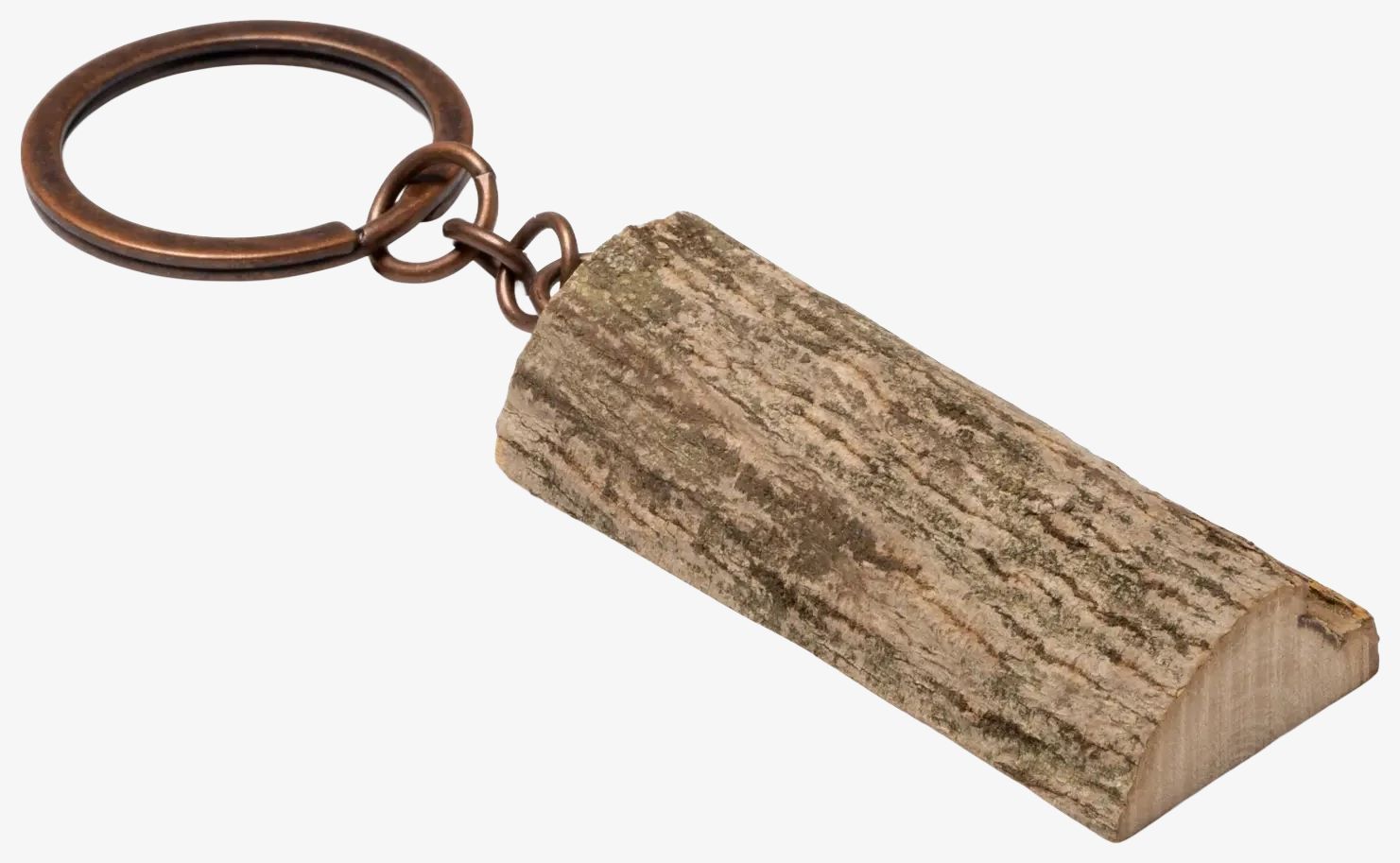 The TOPAC keychain is made of wood with a metal ring. It provides a simple attachment for keys or accessories.