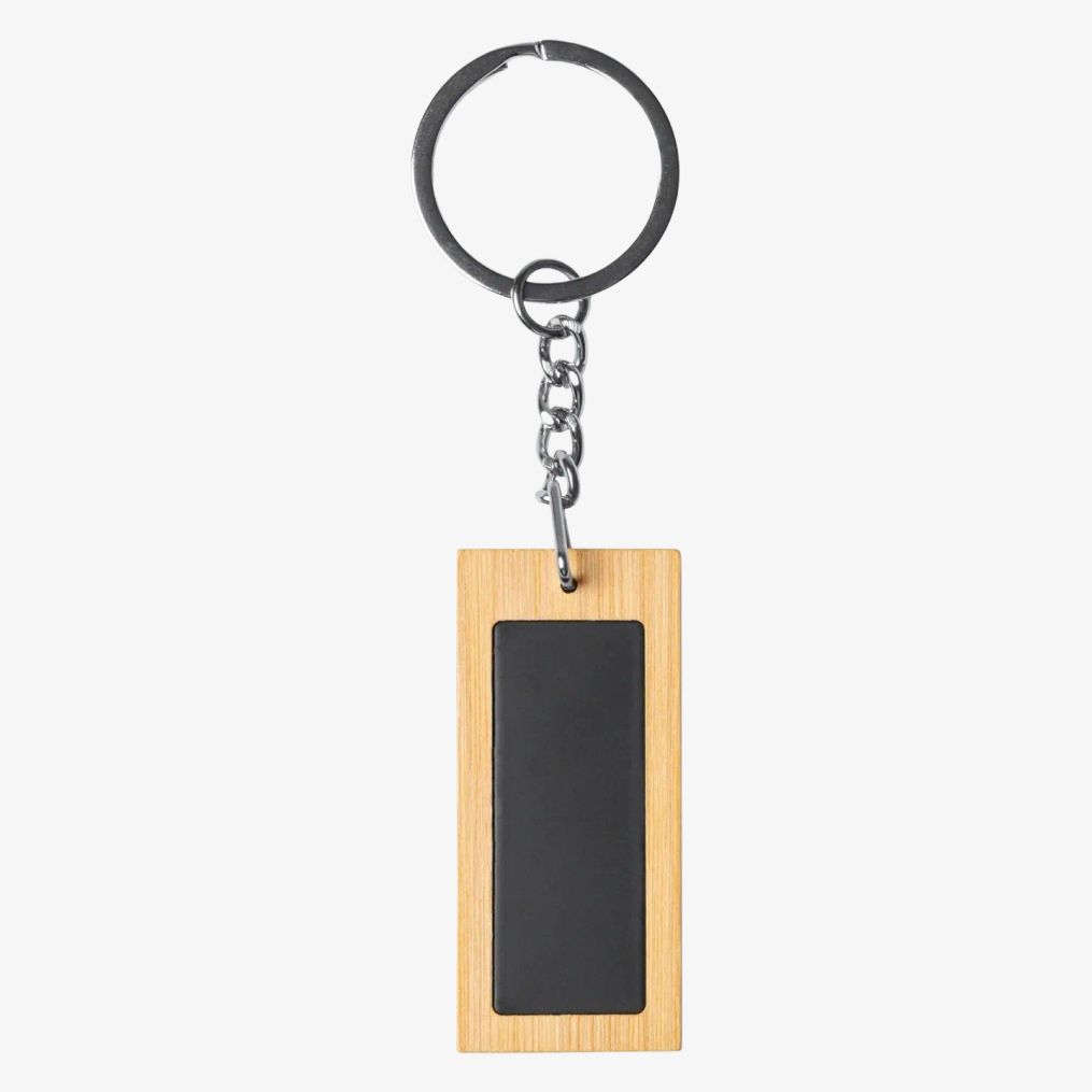 The KRAUS keychain combines bamboo and steel for a structure mixing natural and metallic materials. Its rectangular shape facilitates handling and daily use.