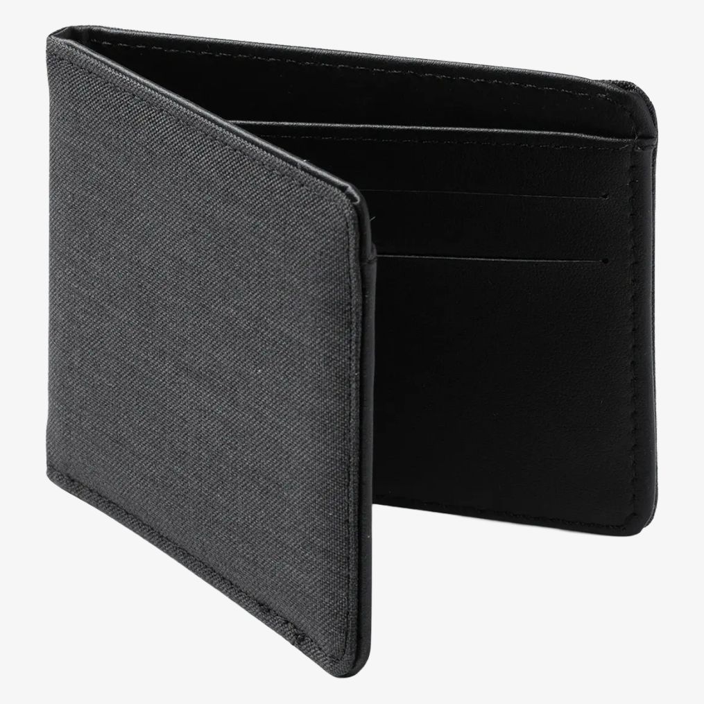 The RPET polyester card holder BEUNER features a heathered design with integrated RFID protection. It includes six inner compartments for card storage.