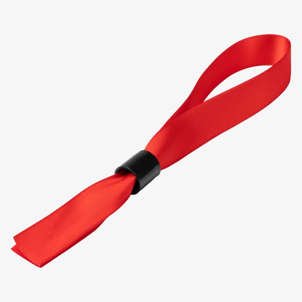 The adjustable polyester wristband with safety clip provides possible adjustment for identification use. Its dimensions fit different wrist sizes.