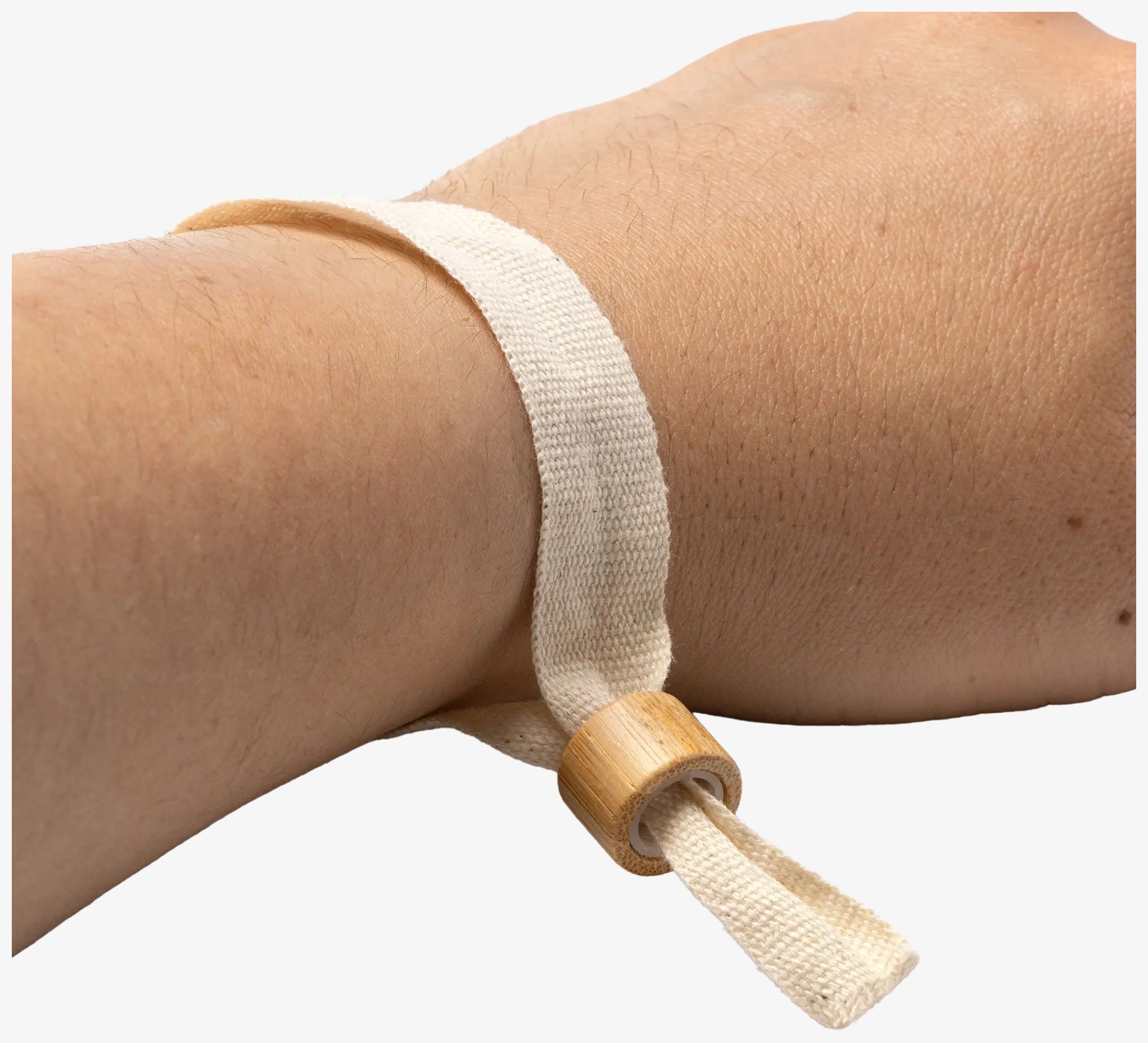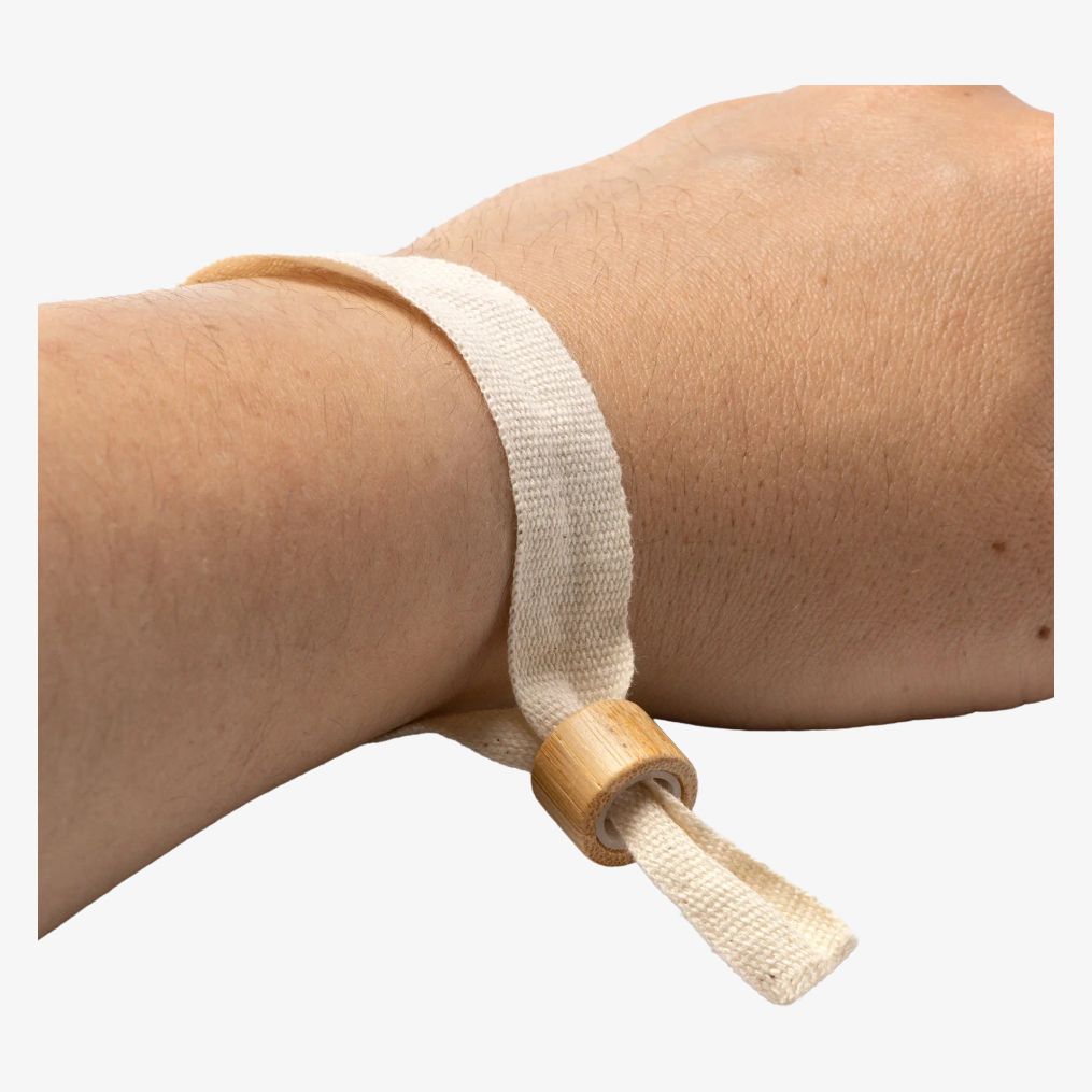 The ORBIT bracelet is made of natural cotton and bamboo. It measures 35 x 1.5 cm and has a non-reversible safety clasp.