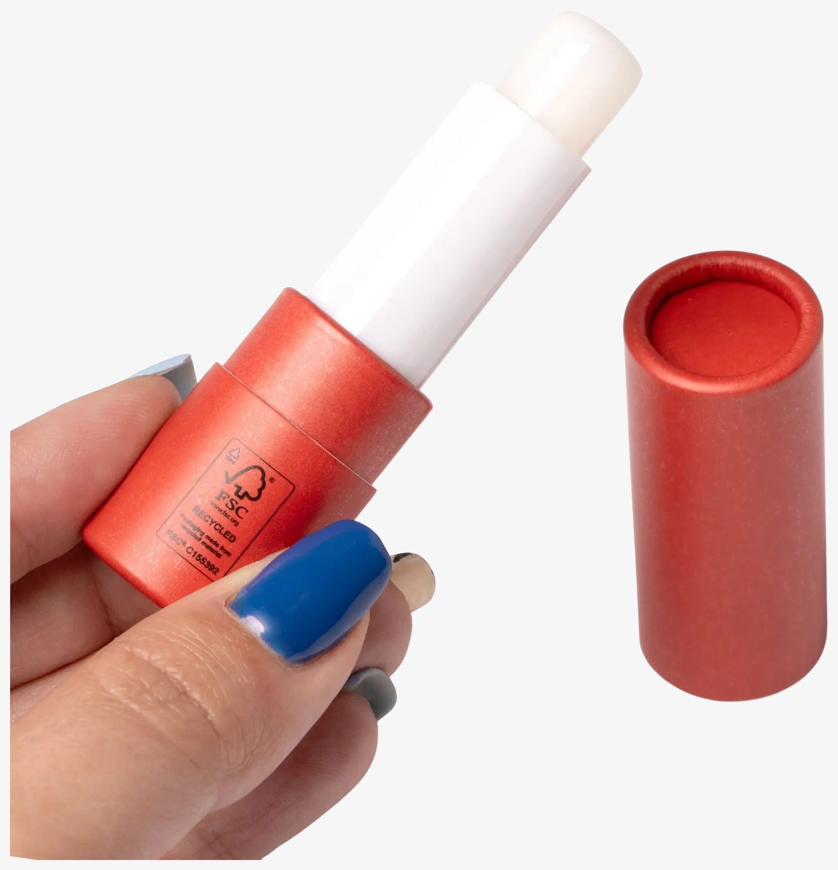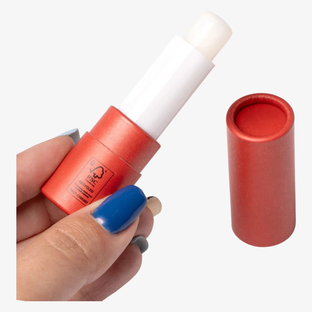 The lip balm RIBA is housed in a FSC-certified recycled cardboard case. It features SPF15 sun protection and a vanilla aroma. The compact size facilitates transport.