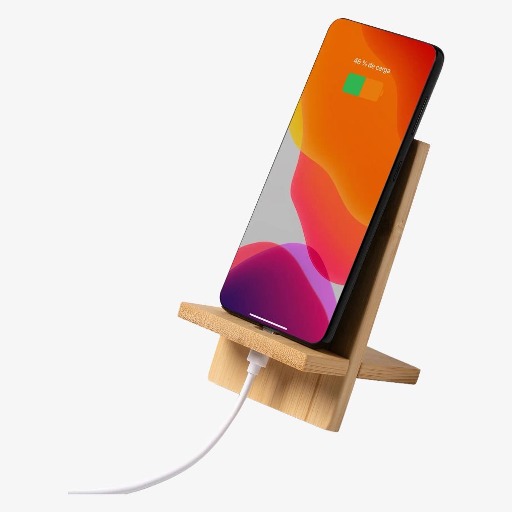 The bamboo phone stand LYRA is designed to hold a smartphone during charging. It includes two pieces to assemble simply, providing stability suited for common uses.