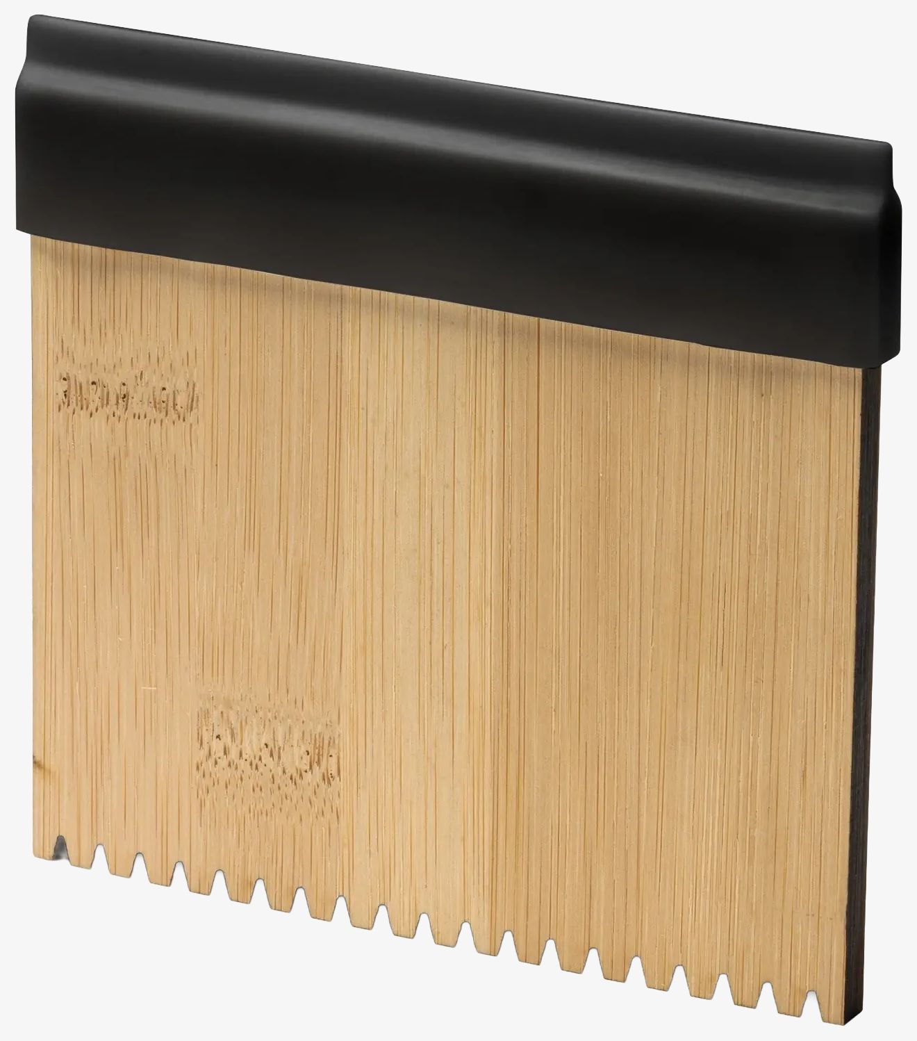 The bamboo ice scraper includes a serrated edge and a flat edge for various uses.