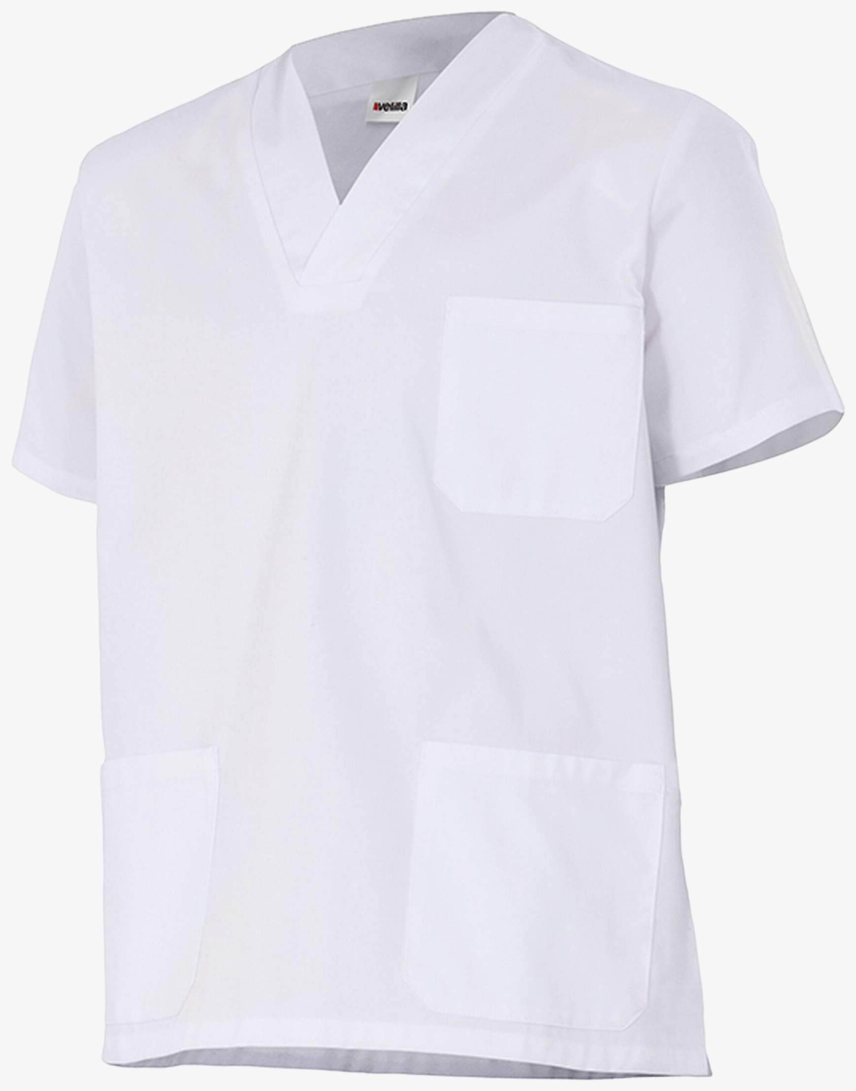 The short-sleeve cotton tunic features a V-neck and side slits to ease movement. It includes three patch pockets for accessible storage. This tunic is made of cotton.