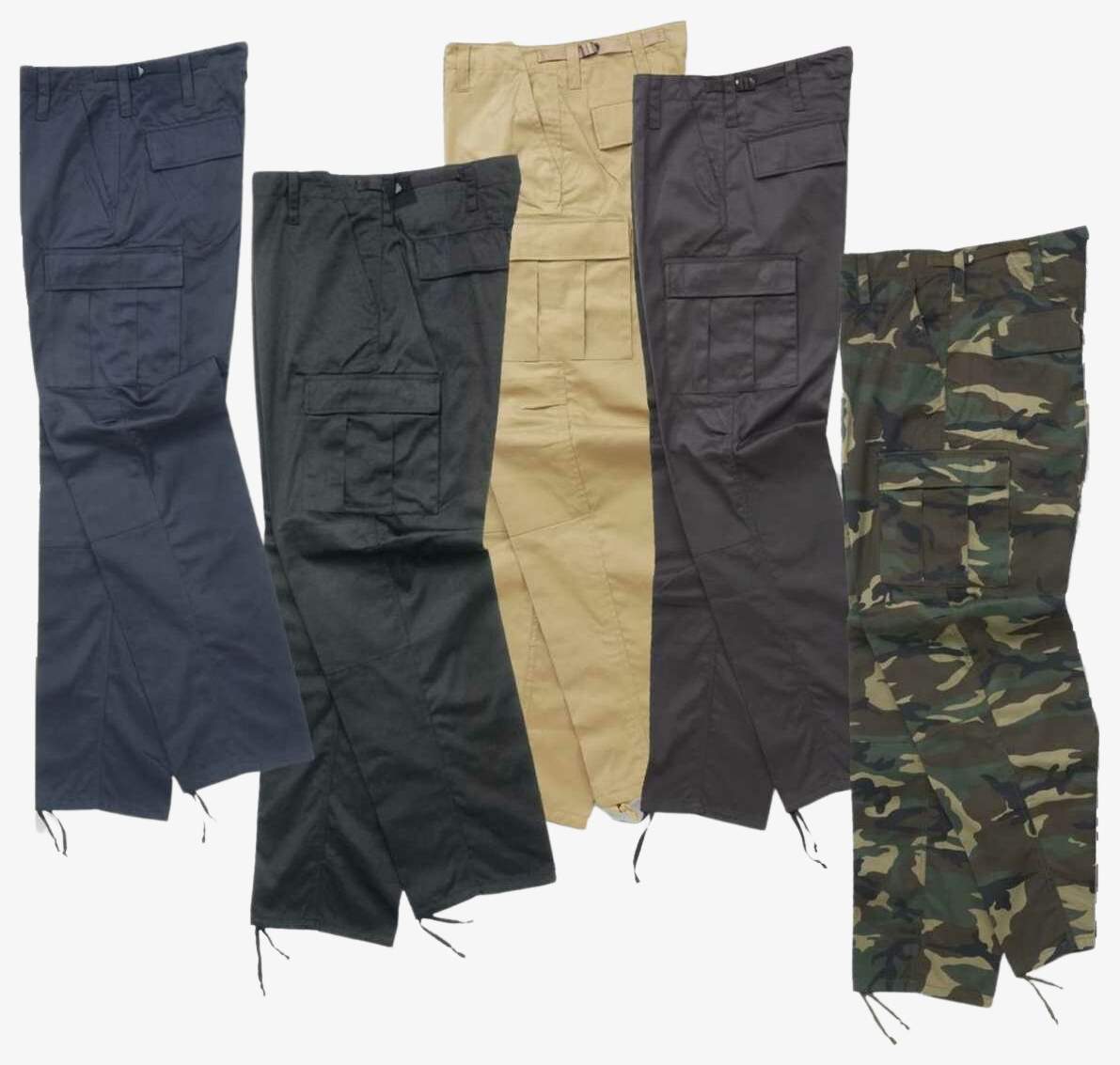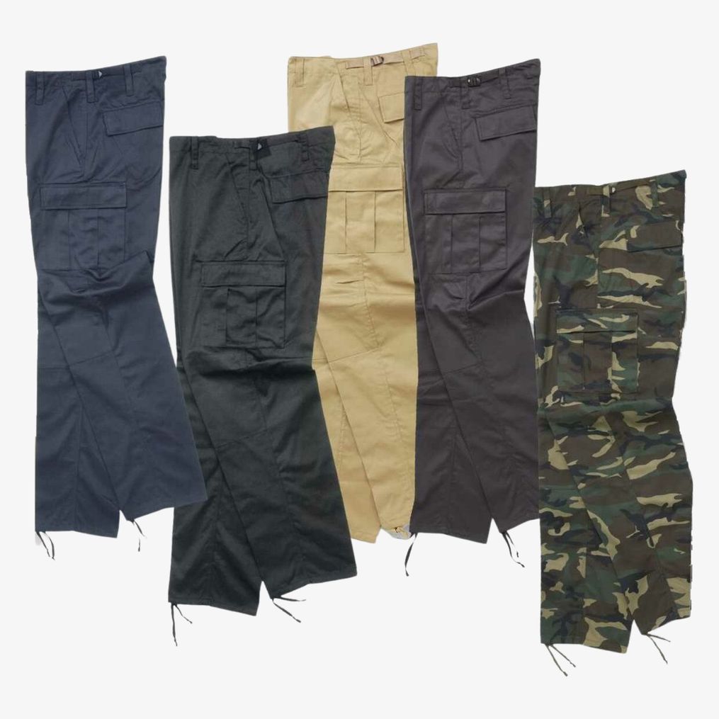 The multi-pocket work trousers feature adjustable ankles and waist as well as reinforcements on seat and knees. It includes six pockets distributed over front, thighs and back. Closure is by button and zip.