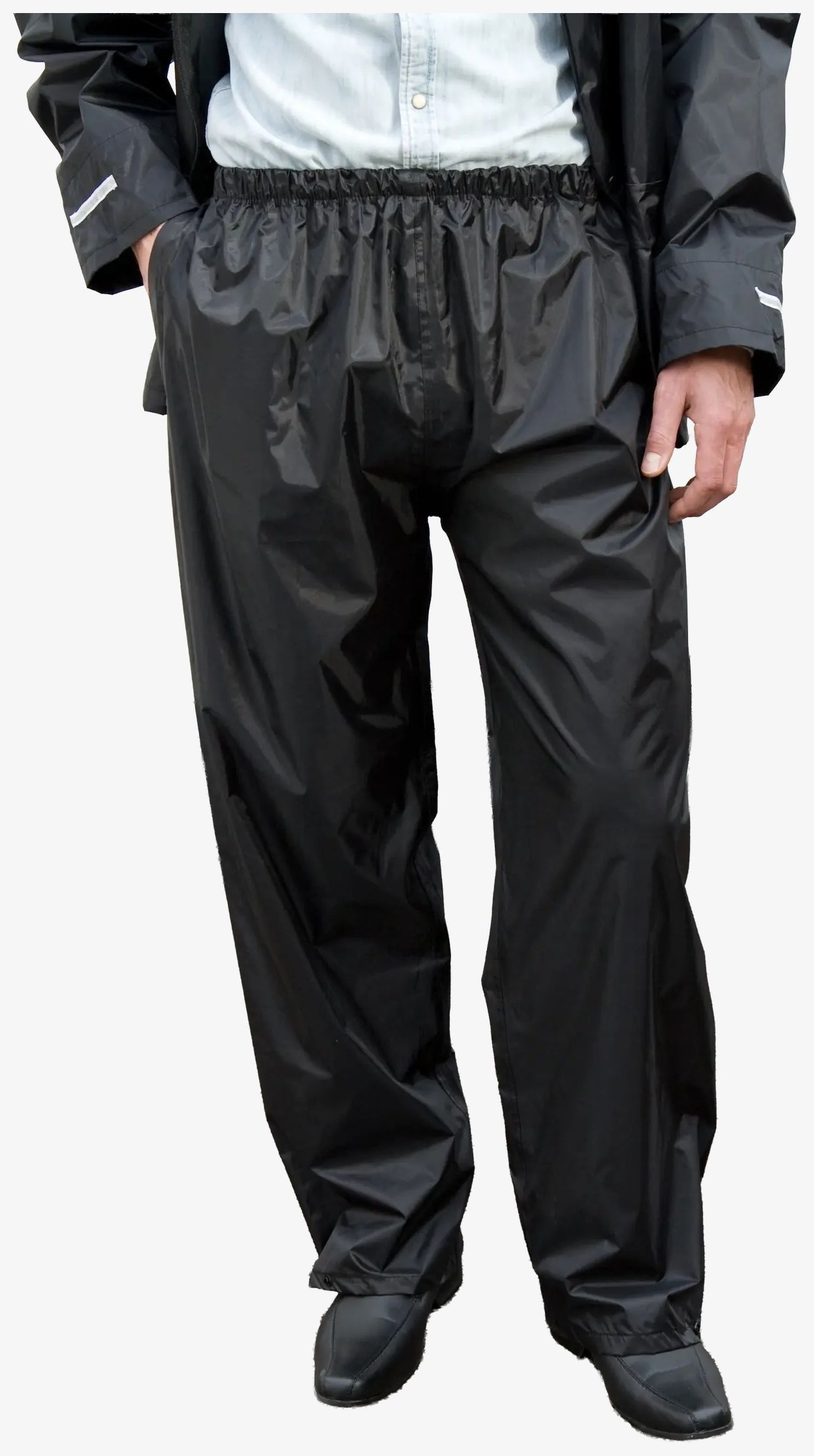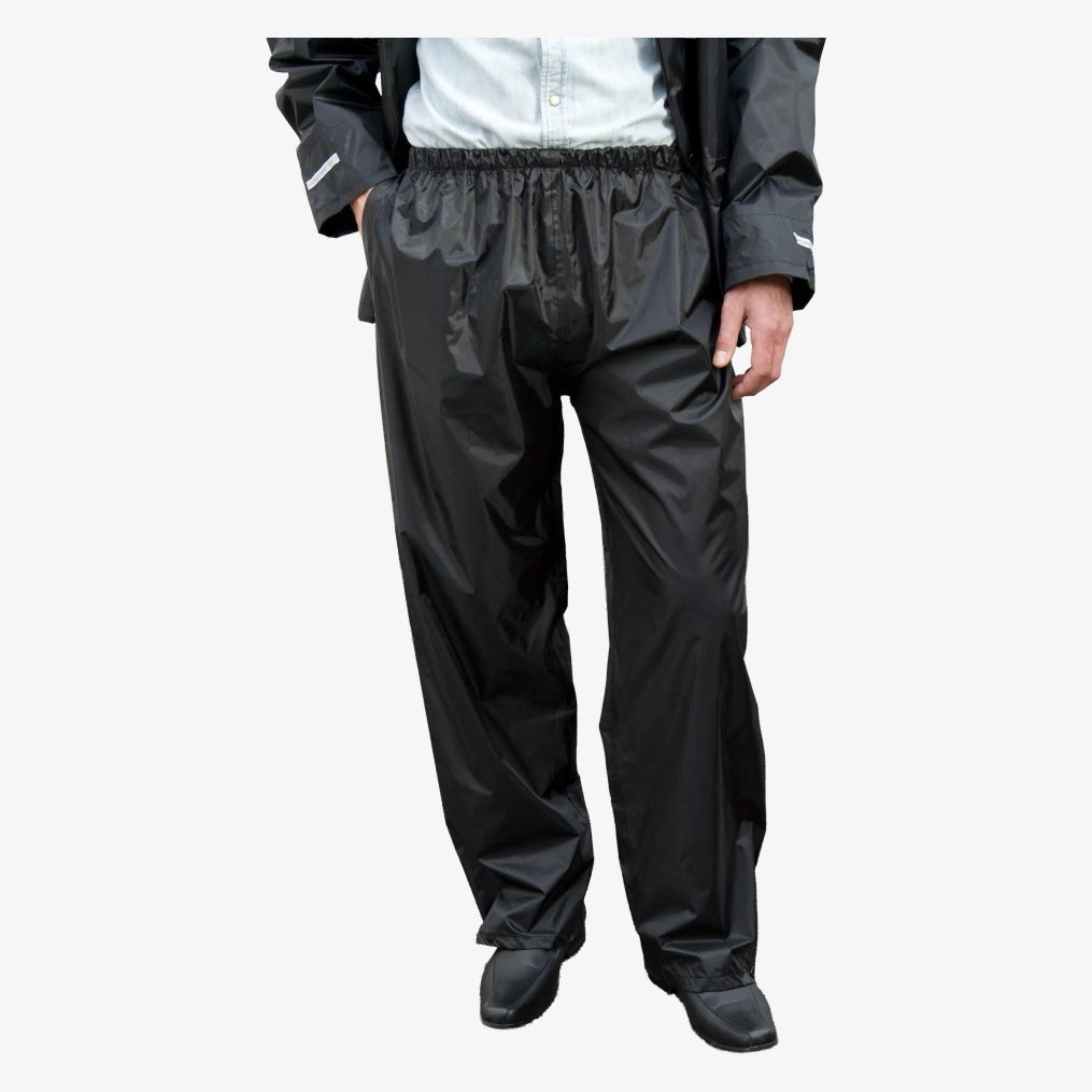The Waterproof rain Trouser is waterproof trousers with a PVC coating, designed to reduce moisture in rainy weather. Elasticated waistband, access via 2 side pockets, and ankles adjustable with press studs.