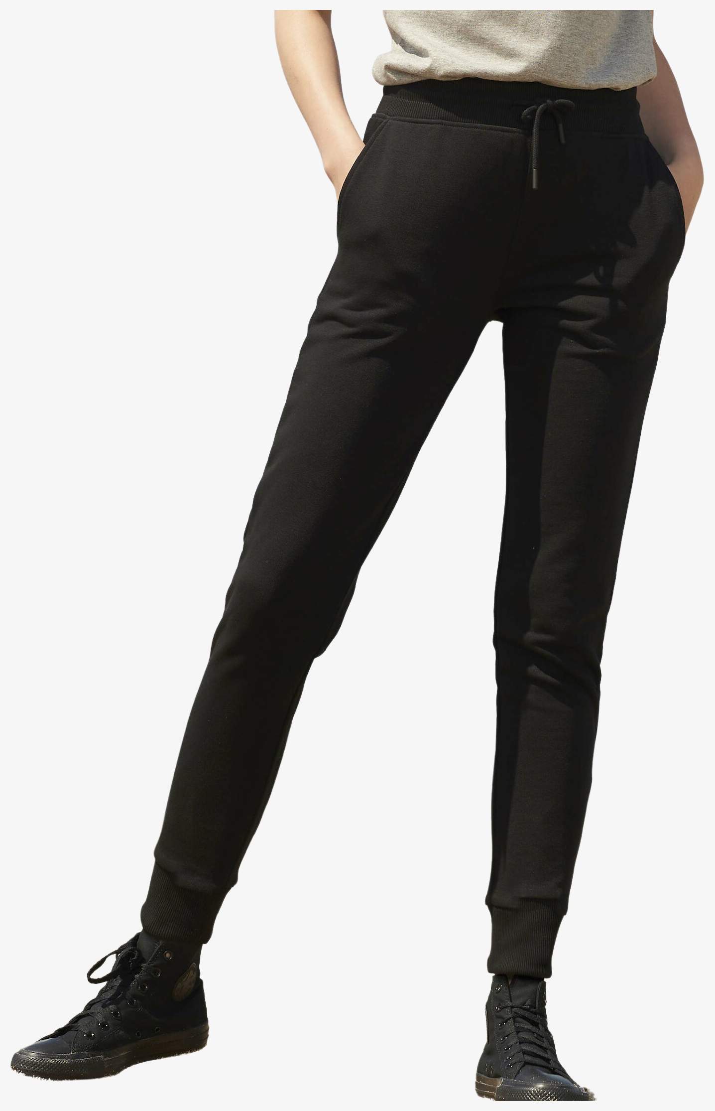 The combed cotton legging Jet Women is made of french terry with two Italian pockets and one patch pocket at the back. It features a 2x2 rib at the waist and the bottom of the legs as well as a round drawstring with tone-on-tone tips.