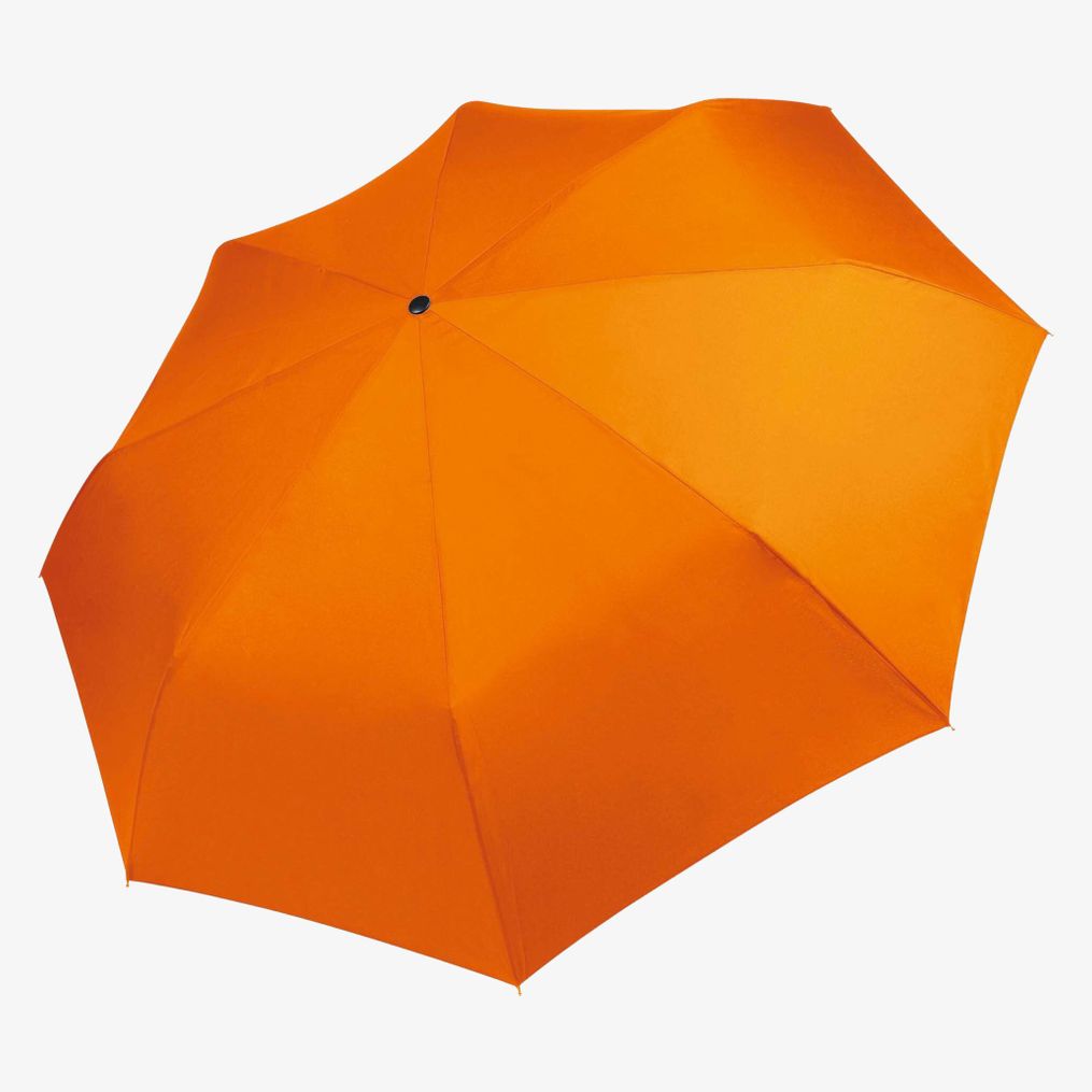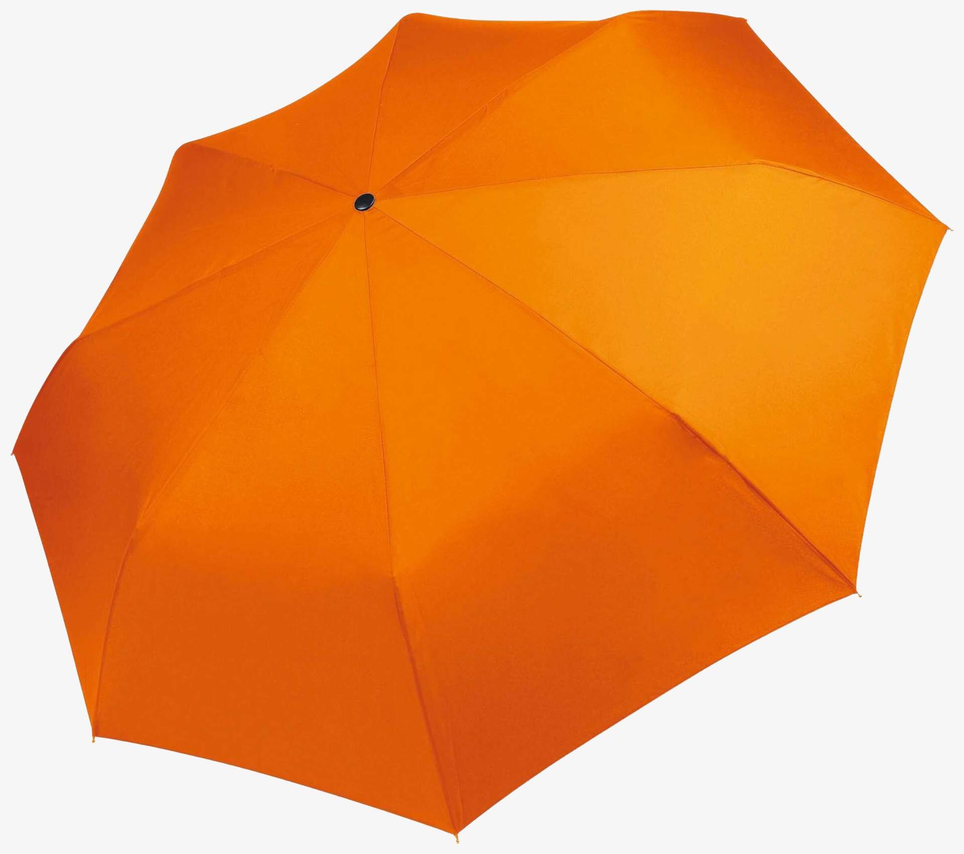 The Mini folding umbrella is a 21-inch (54 cm) umbrella that folds in 3 sections, with manual opening. Metal shaft, fiberglass ribs, plastic handle, 100% polyester pongee canopy, metal rib tips.