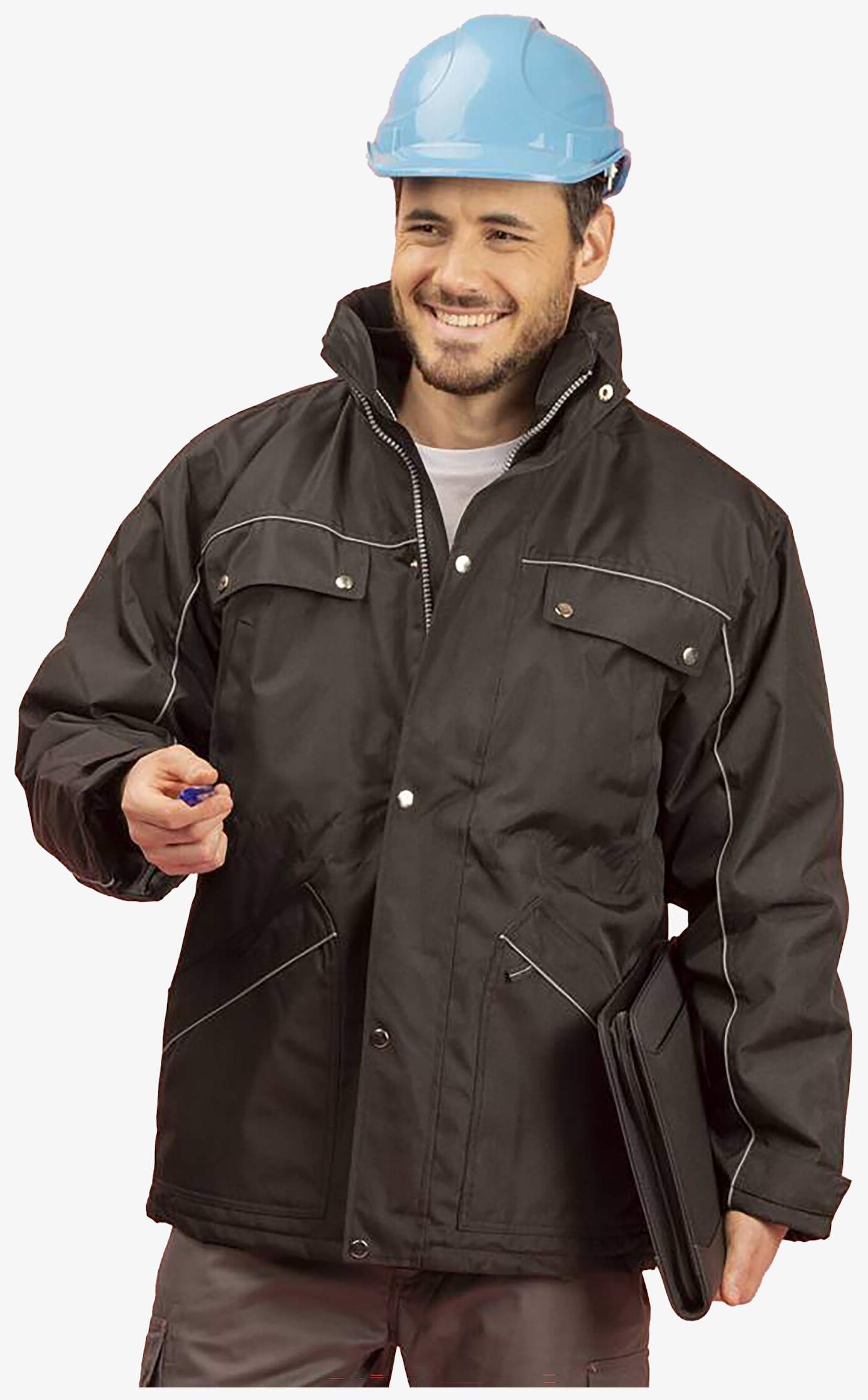 The CAP HORN pk561 parka is designed for versatile mid-season use with multiple pockets and functional elements. It features a fleece-lined collar and an integrated balaclava hood in the collar. Ribbed cuffs on the sleeves and reflective piping on the front, back and sleeves provide specific details.