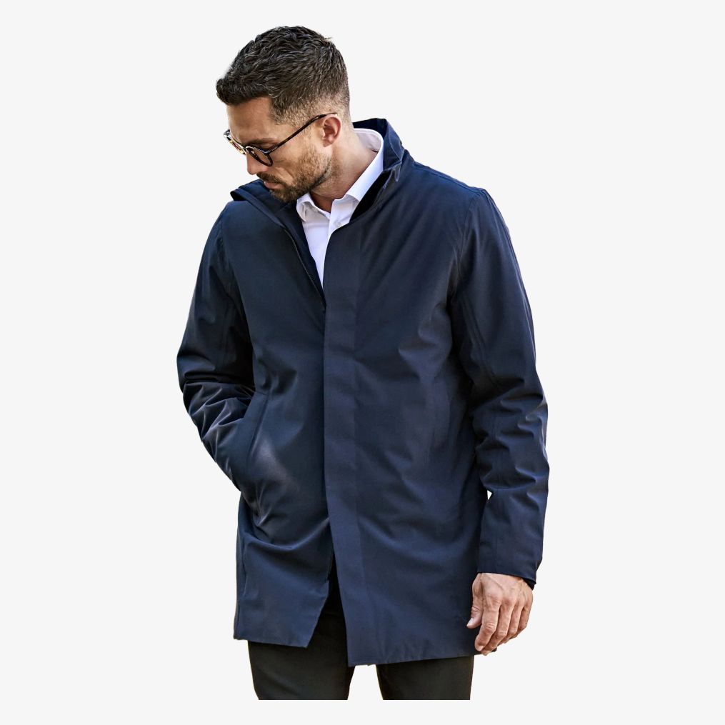 The men's all-season parka combines a classic and sporty style with a high collar and large zipper. It is water-repellent and features two front spacious pockets with hidden closure by magnetic buttons and a zipped closure.