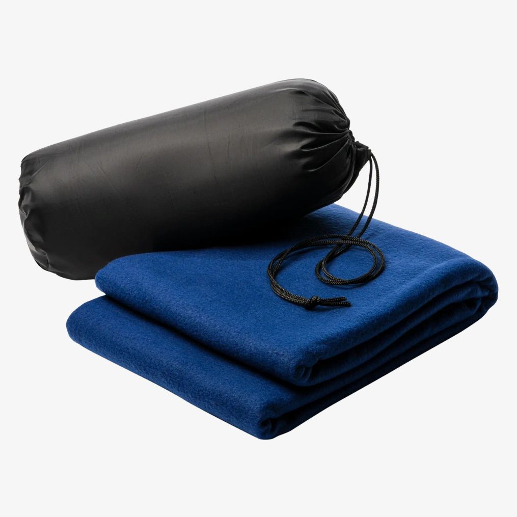 The RPET recycled polyester fleece blanket includes a practical cover and anti-pilling treatment.
