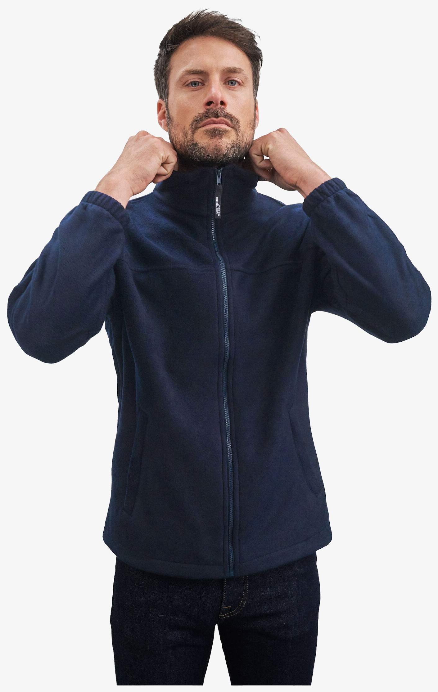 The Full-Zip Fleece is a polyester fleece designed for versatile use. It features a stand-up collar and two zippered side pockets. The outer fabric is treated to reduce pilling.