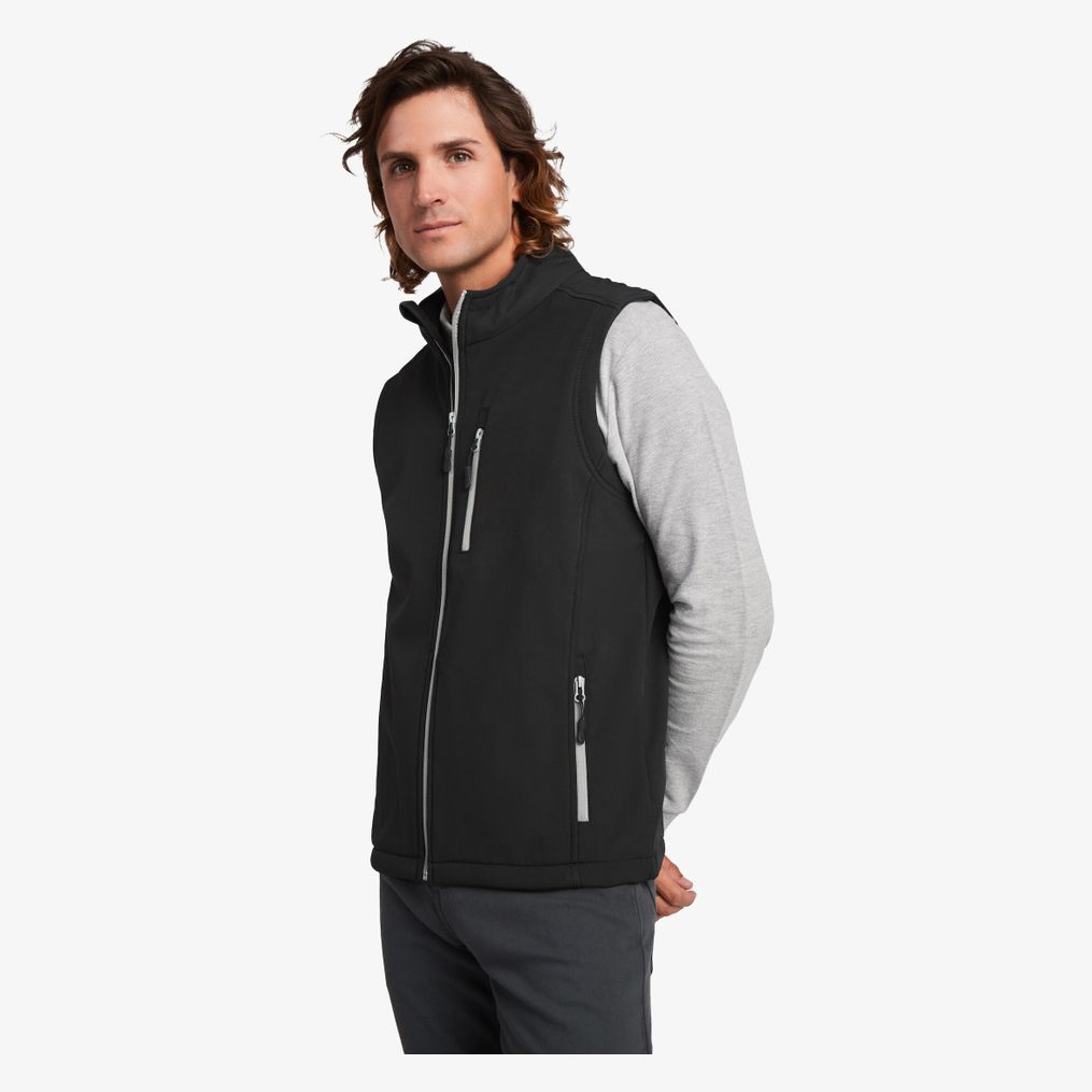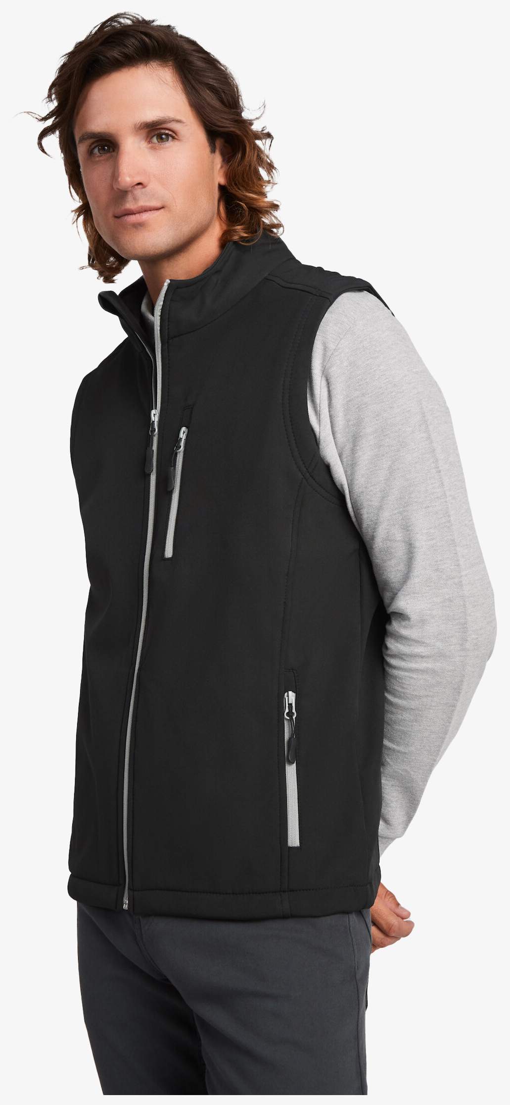The Nevada ra1199 softshell vest is a 2-layer vest with a full-length zip fastening, three zip pockets and an adjustable hem with elastic drawcord.