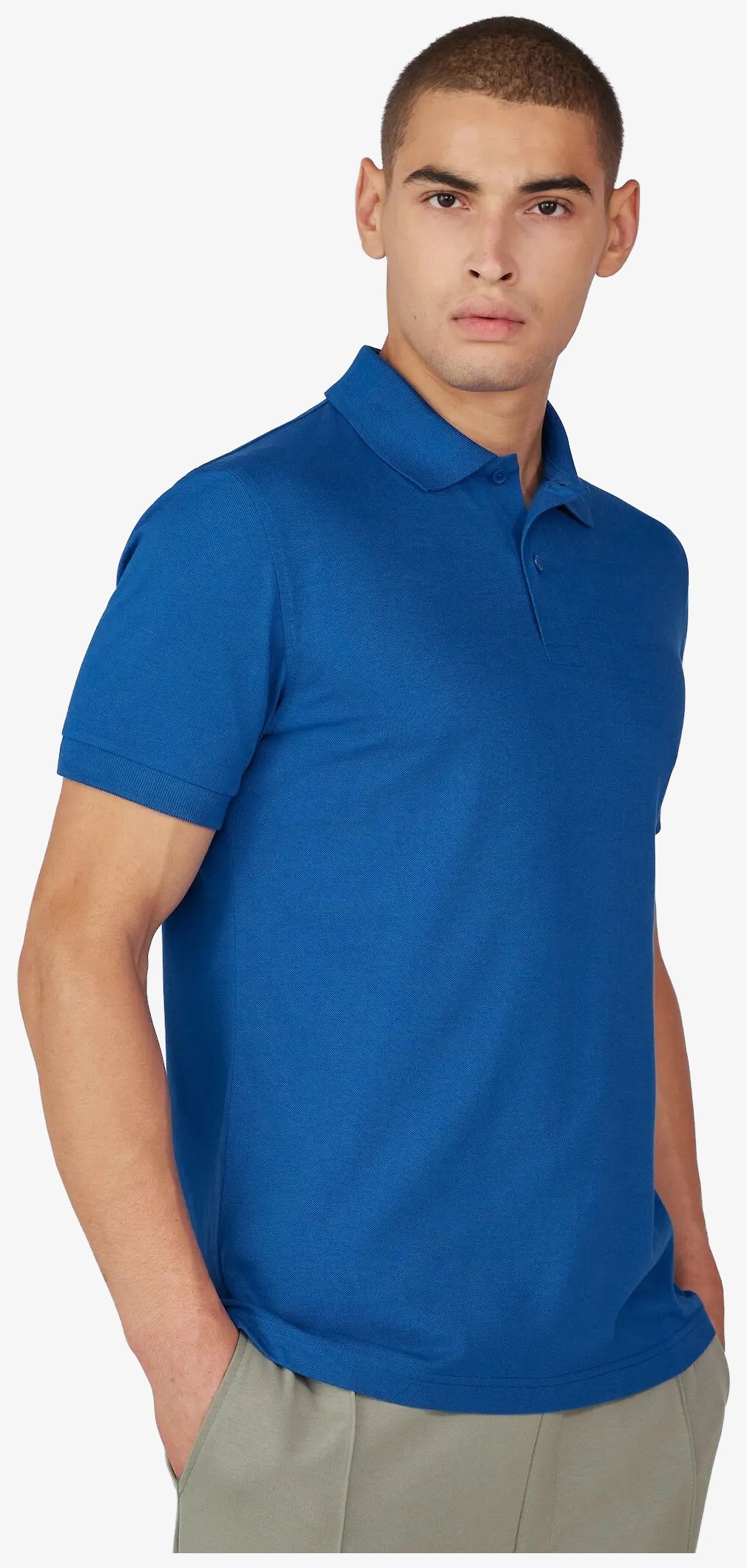 The short-sleeve polo shirt features breathable piqued fabric with a reinforced 2-button placket and 1x1 ribbed collar cuffs. The buttons are tone-on-tone, shoulder seams are reinforced with a collar tape.
