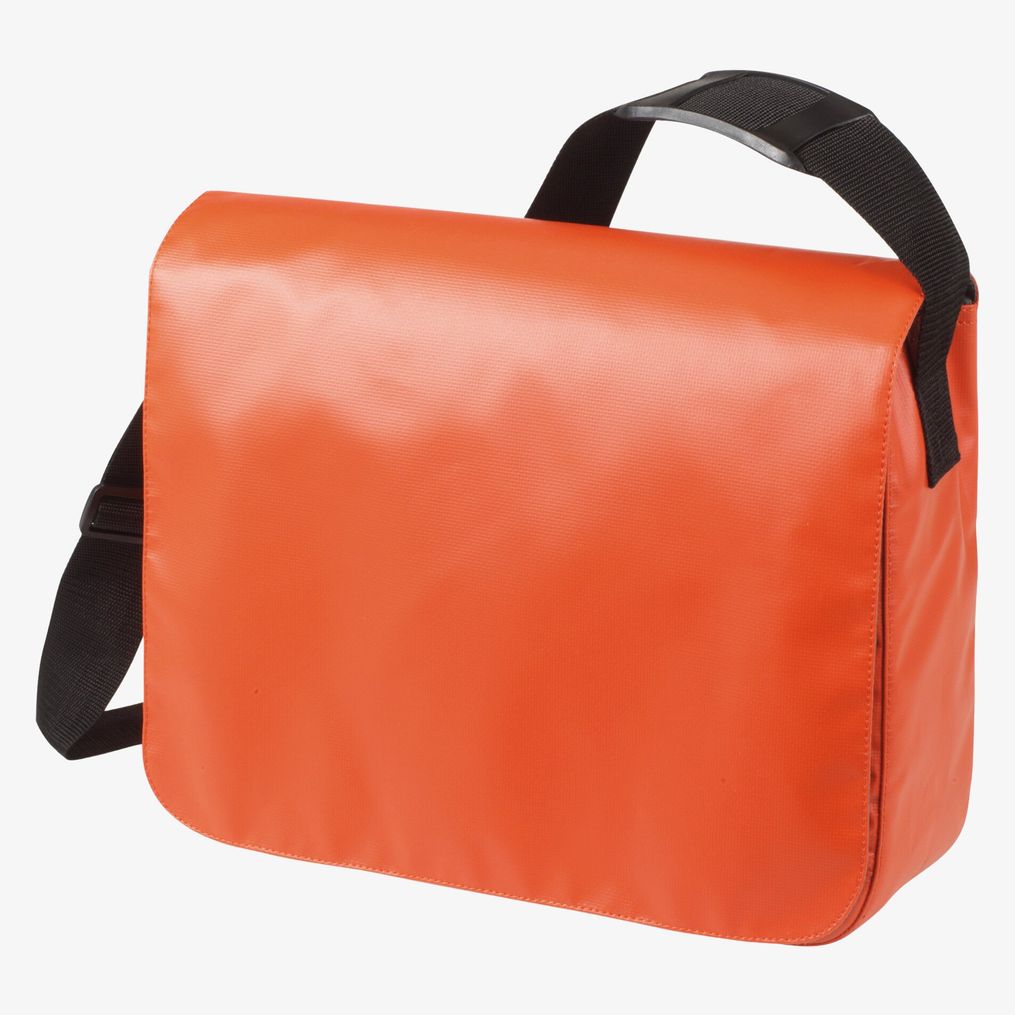 The shoulder bag includes a spacious compartment equipped with an organizer, a wide strap, and a large flap closed by a hook and loop fastener. Its structure facilitates the storage and carrying of personal belongings.