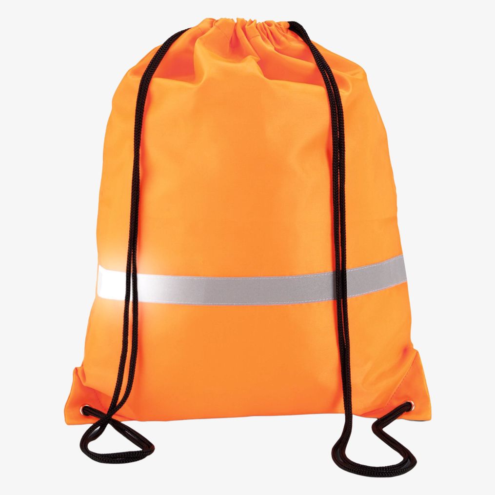 The Drawstring backpack [[KIMOOD]] is used for carrying personal items on a daily basis, with a drawstring closure and reflective strip. Material: 210D PU.