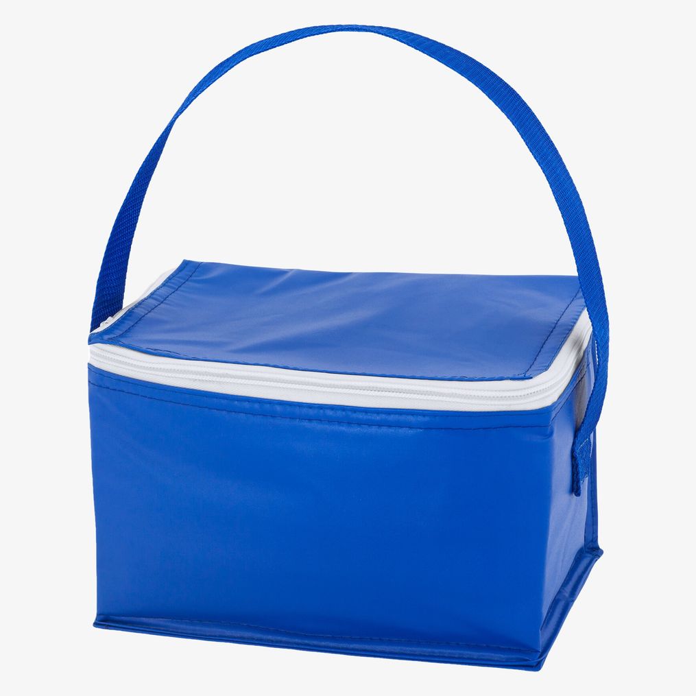 The TIBU insulated bag carries up to 6 cans with an aluminum finish. It includes a matching handle and zip closure for practical use.