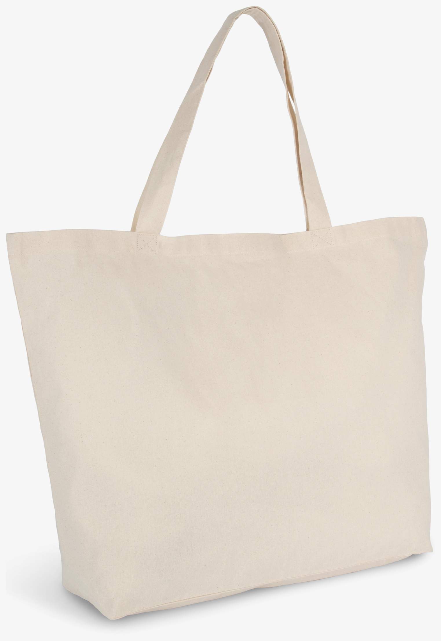The extra large cotton shopping bag is made of cotton with strap handles made from the same material. It has a capacity of 34 liters and dimensions suitable for everyday use.