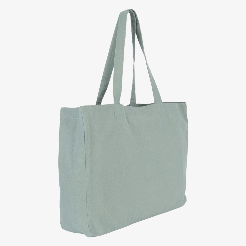 The shopping bag is a large rectangular bag with a flat bottom and a wide gusset. It has handles made from the same material as the bag, ensuring a uniform appearance. The interior capacity is large, allowing to carry various items. Faded models show slight color variations making each piece unique.