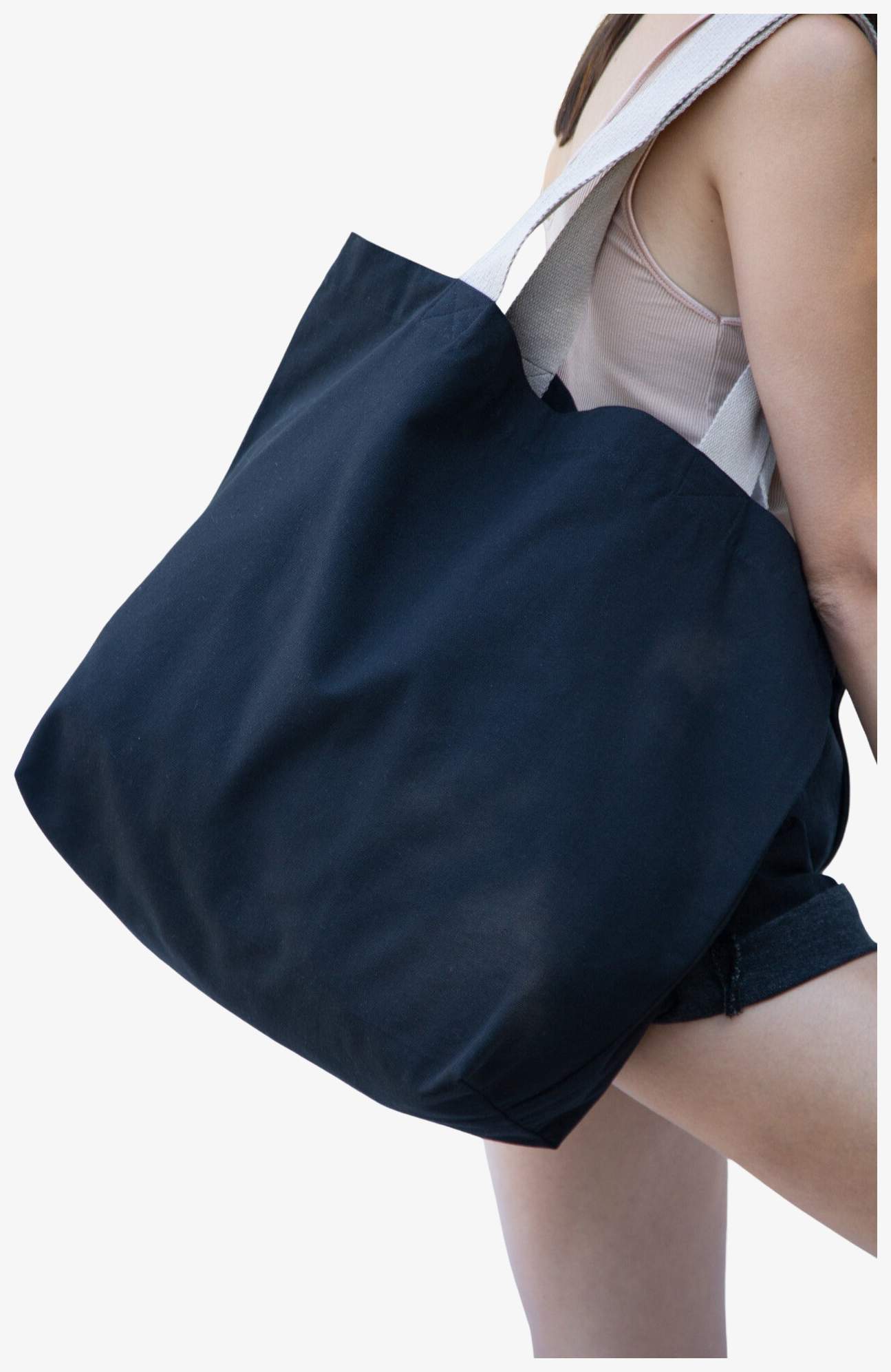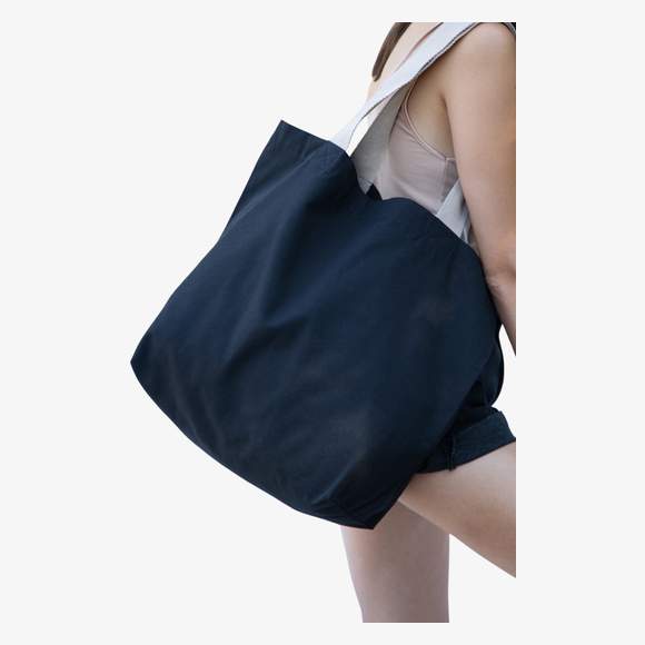 The large recycled shopping bag features 60 cm handles with 4.25 cm wide tape for comfortable carrying. The inner pocket with zip closure allows keys and phone to be stored securely. This bag is distinguished by its dimensions 52 x 16 x 40 cm and a capacity of 33 liters.