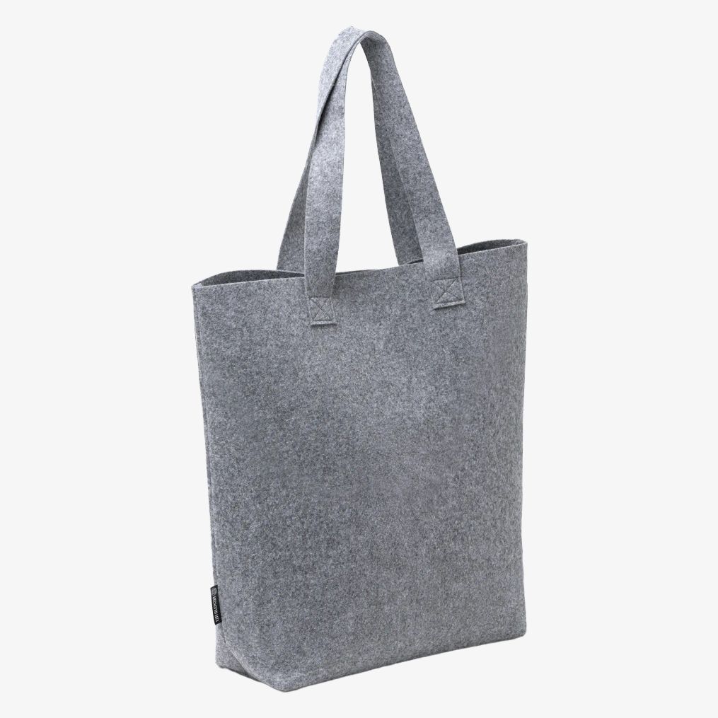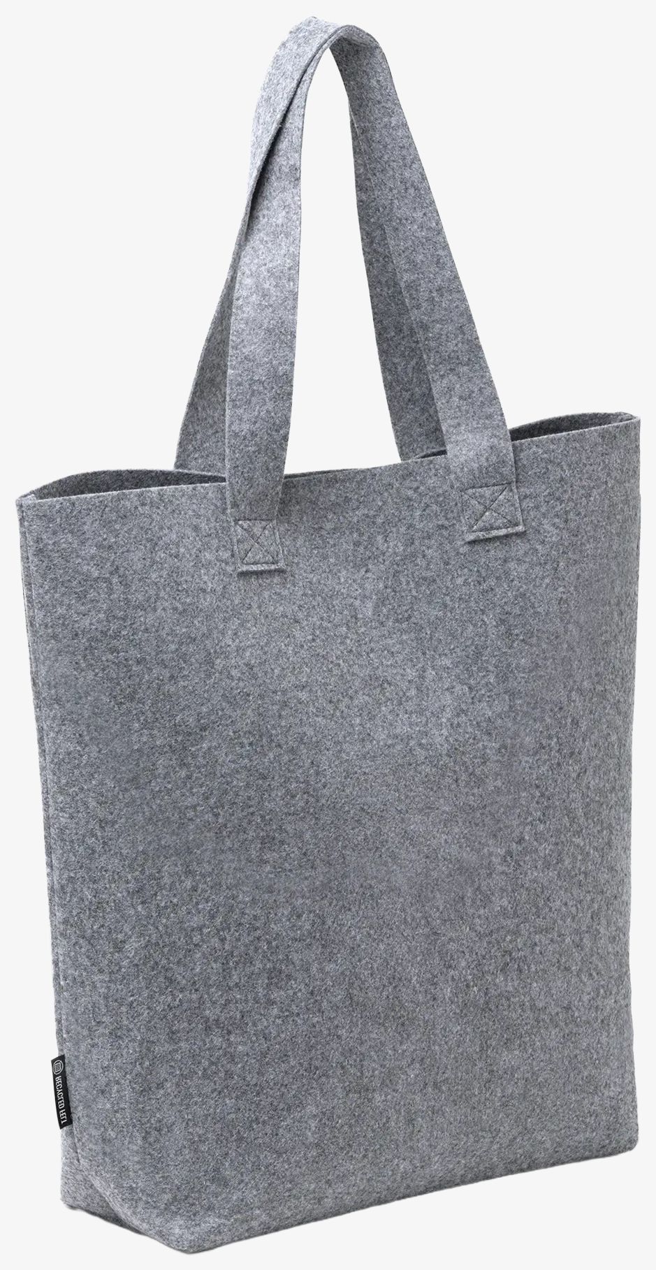 The shopping bag in recycled felt has a mottled design with reinforced handles 70 cm long. Its dimensions are 40 x 42 x 15 cm.