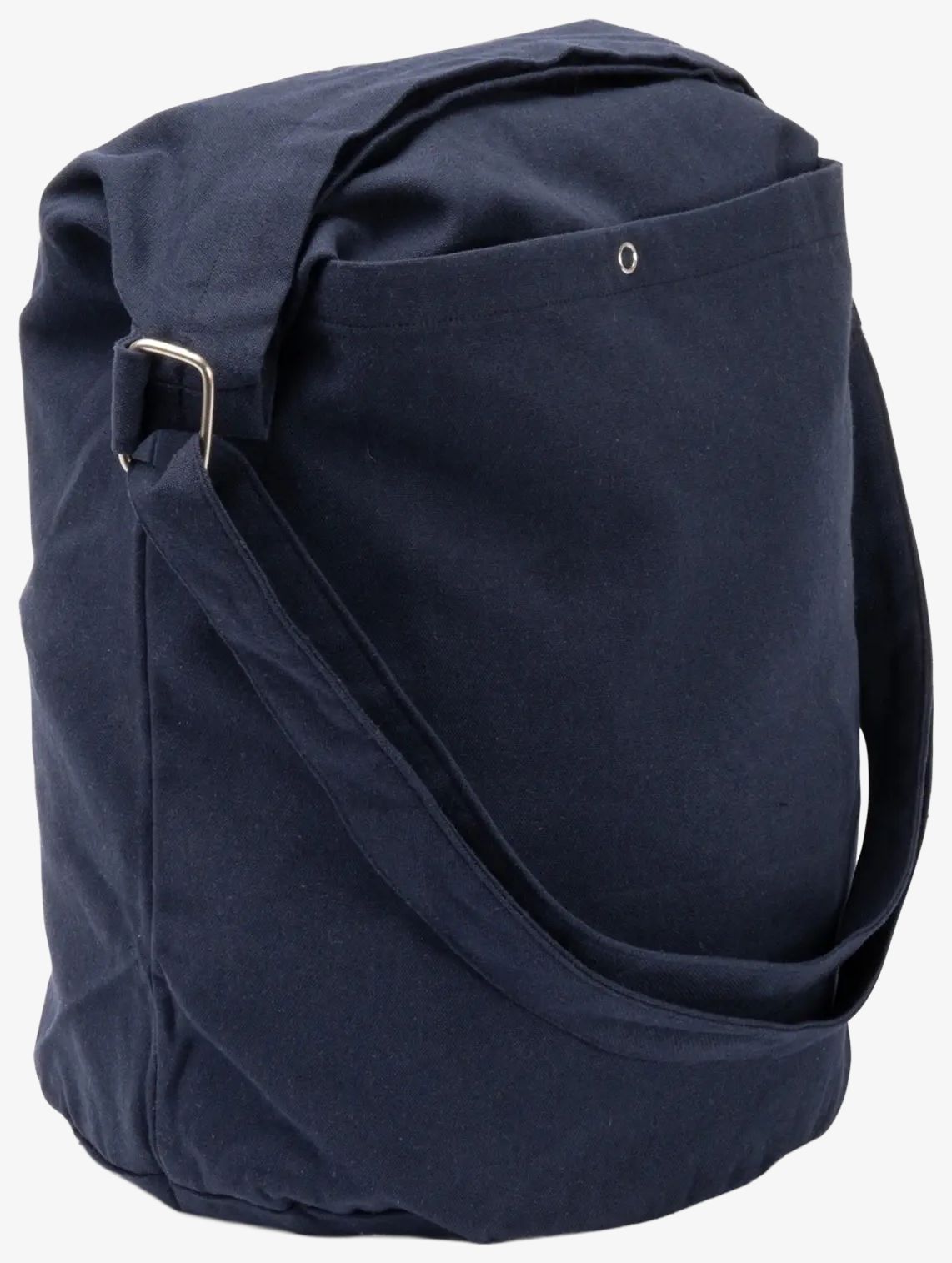 The TORLA shopping bag is made of recycled cotton. It includes a front pocket and a buttoned inner pocket. The handle is adjustable for a suitable fit.