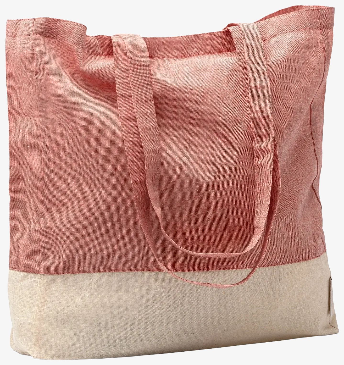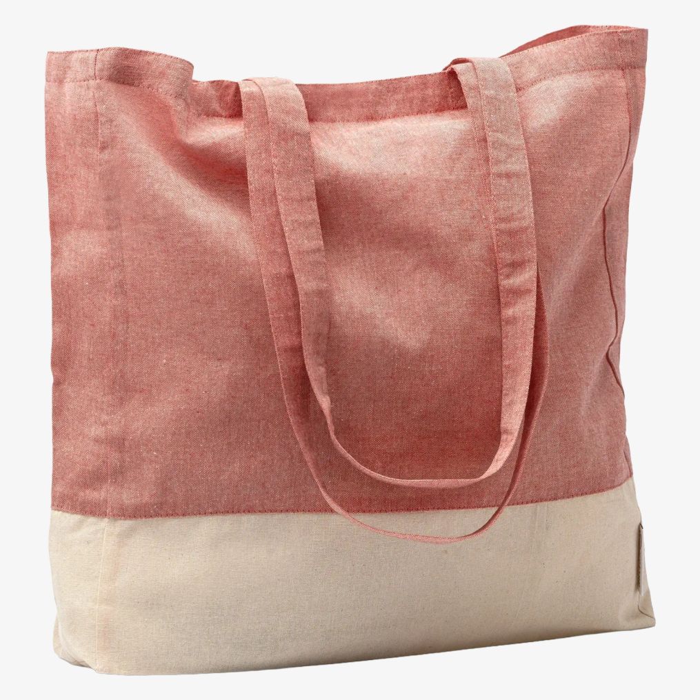 The recycled cotton shopping bag features a natural cotton heathered design with gusset and reinforced handles 70 cm long. Suitable for carrying various objects.