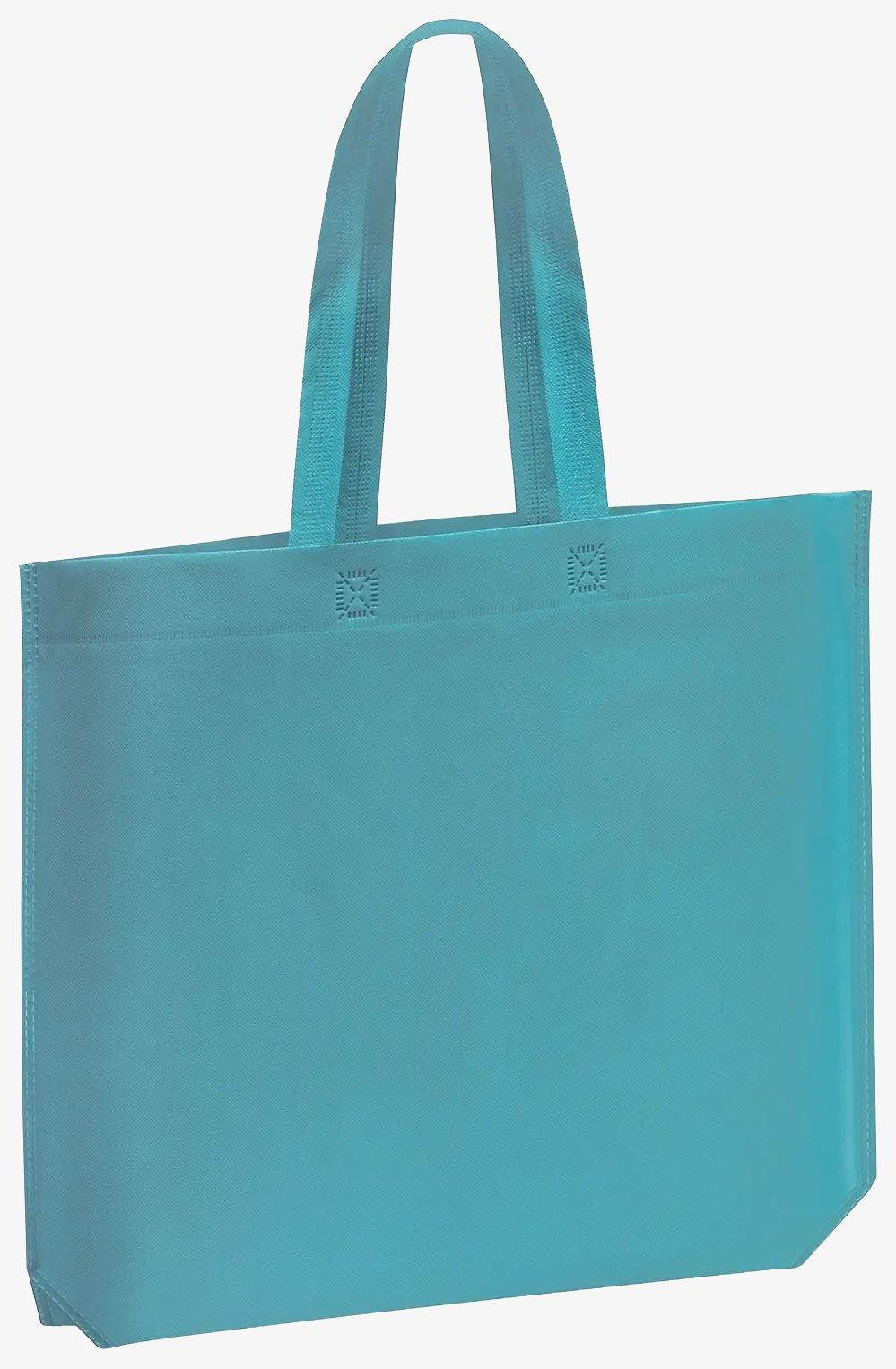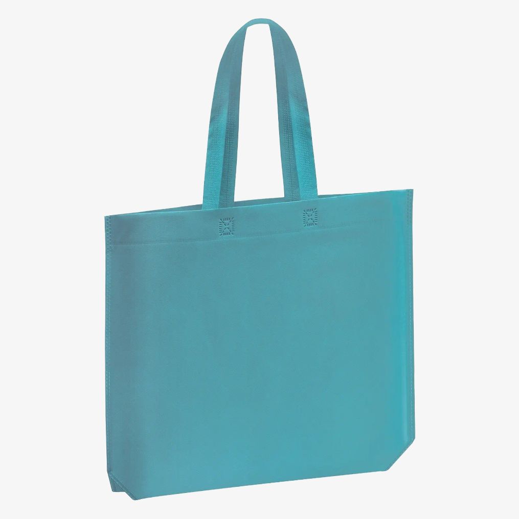 The heat-sealed shopping bag has a hexagonal base and is made of non-woven fabric. It features matching wide handles for comfortable grip.