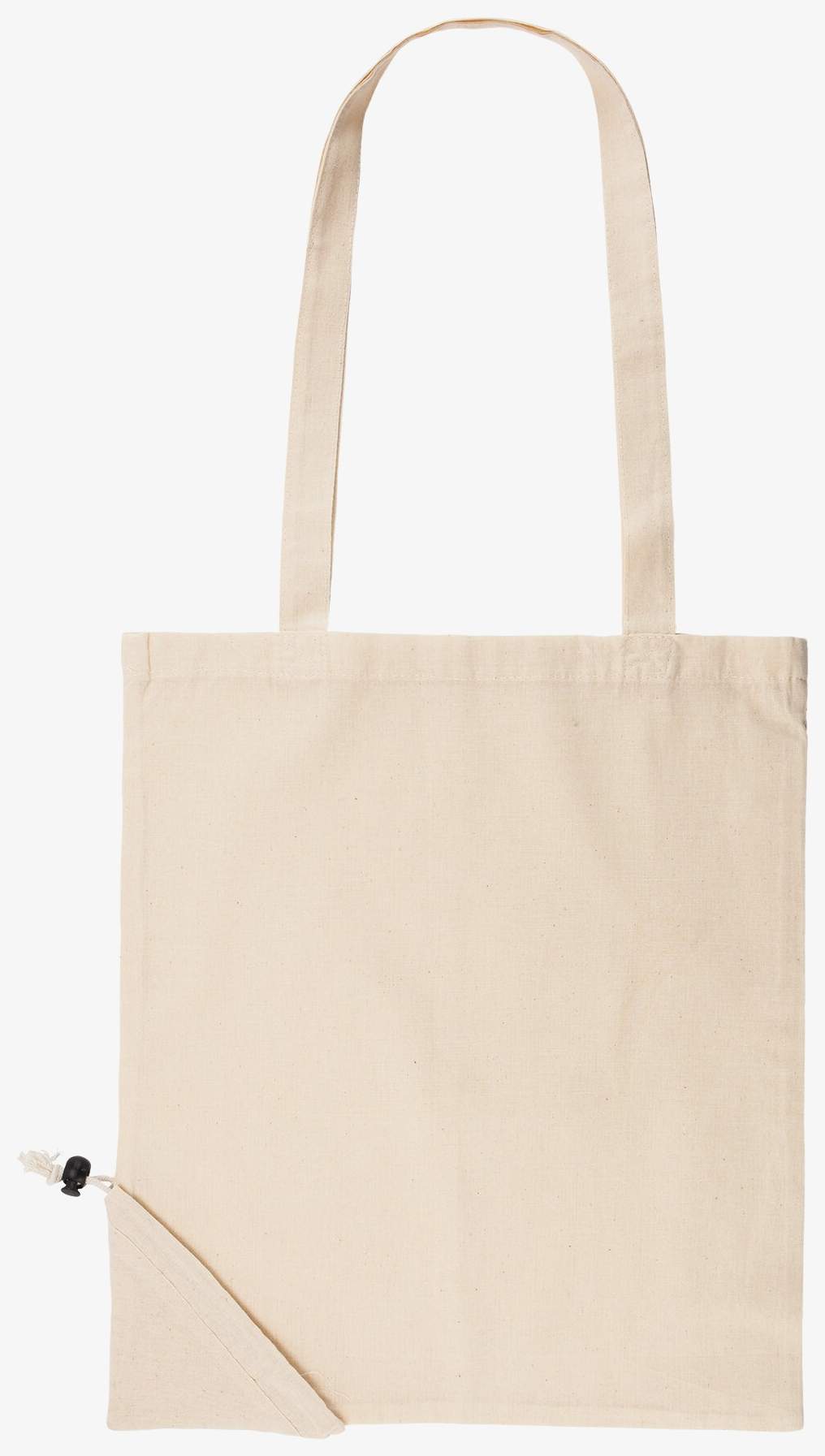 The Dune foldable cotton shopping bag is suitable for carrying everyday items. The reinforced wide 70 cm handles make carrying easier. A drawstring keeps the bag in place once folded.