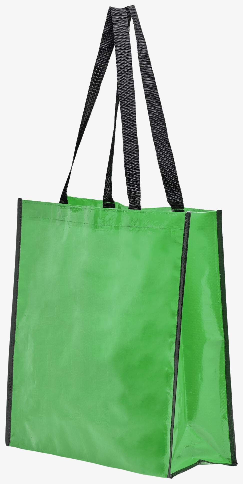 The laminated shopping bag Coast is made of laminated polypropylene with nylon handles equipped with X-shaped stitching and black piping. It has no closure.