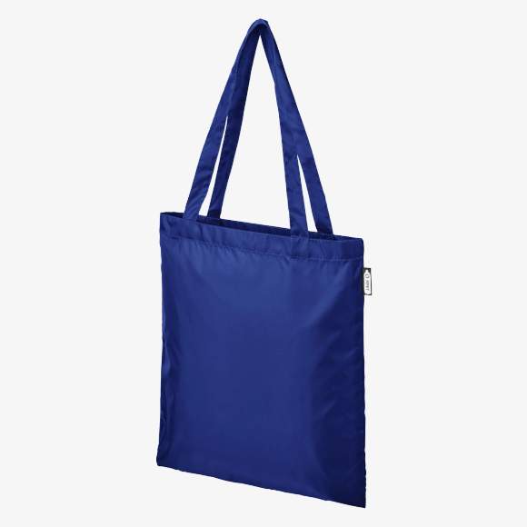 The shopping bag in post-consumer recycled polyester helps reduce plastic waste. It includes two handles with a height of 27 cm and can support a load up to 5 kg. Capacity is 7 liters.