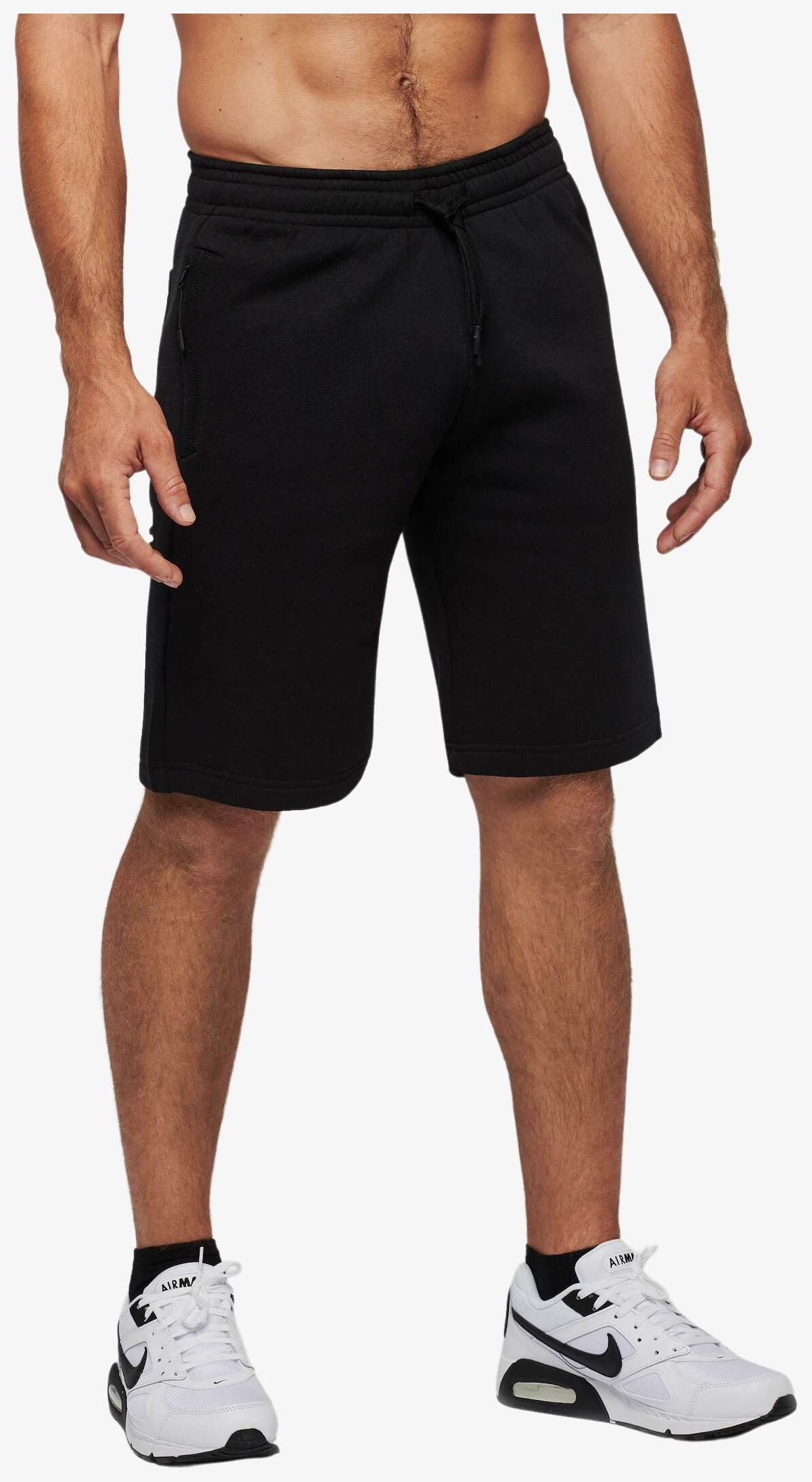 The bermuda molleton multisports adulte is made of brushed fleece composed of 65% polyester and 35% cotton. It features an elastic waistband with tonal drawstring and a soft elastic band inside the waist with fluorescent piping. It has two zipped side pockets, a contrasting fluorescent mesh phone pocket, and a back patch pocket. The finish is ensured by double stitching at the leg hems.